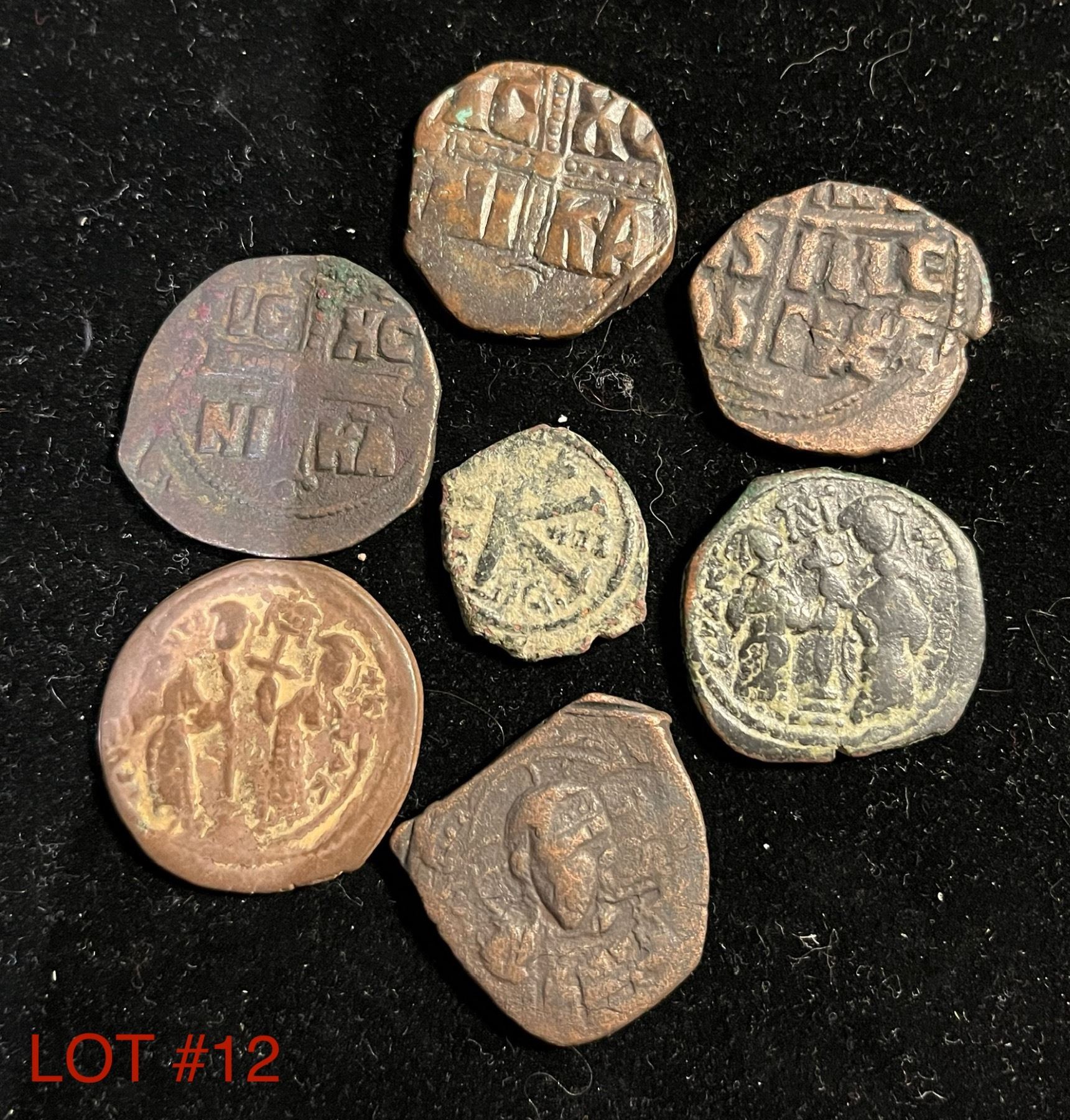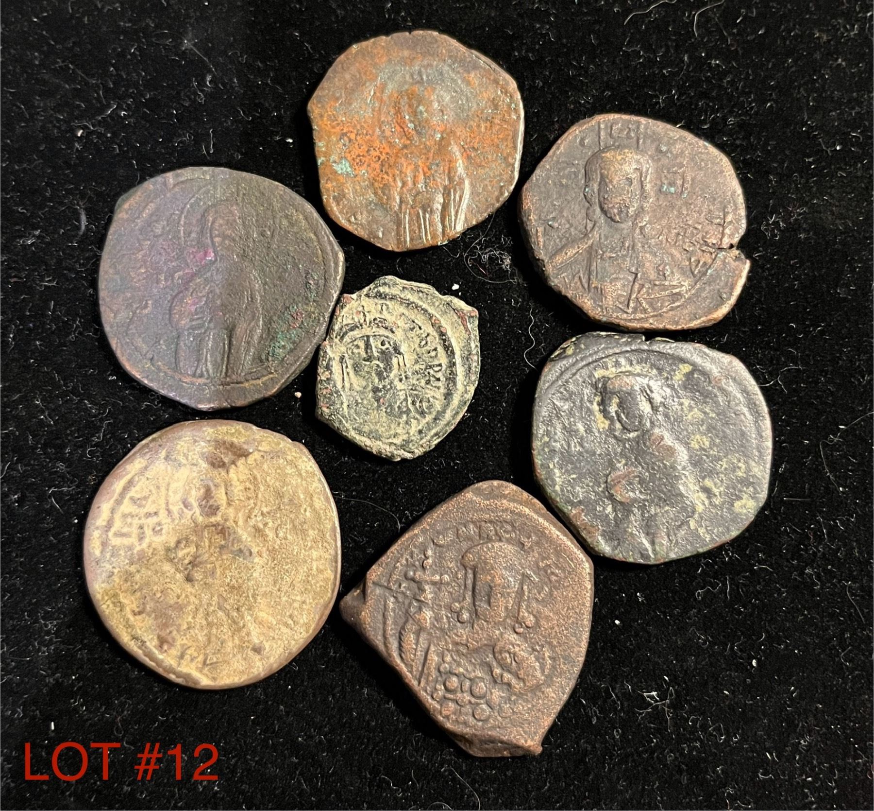 7 different Byzantine bronze coins (Follis, 1/2 Follis)