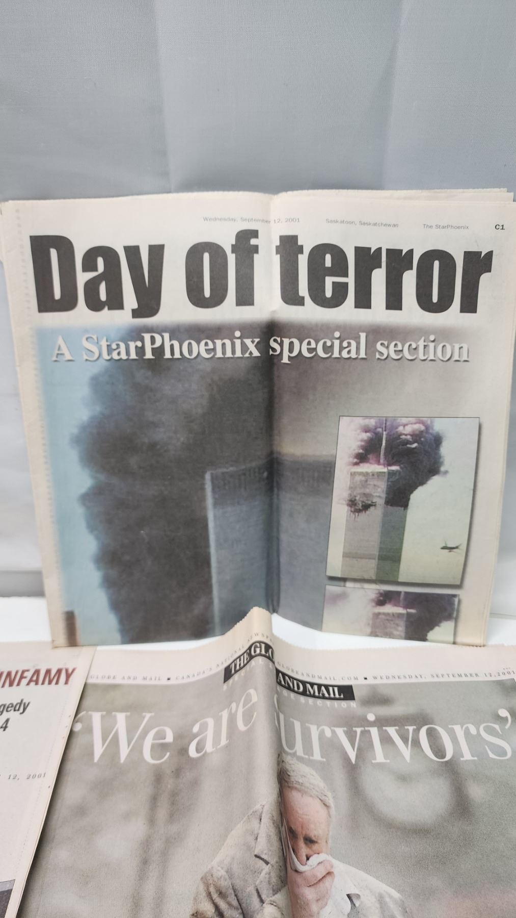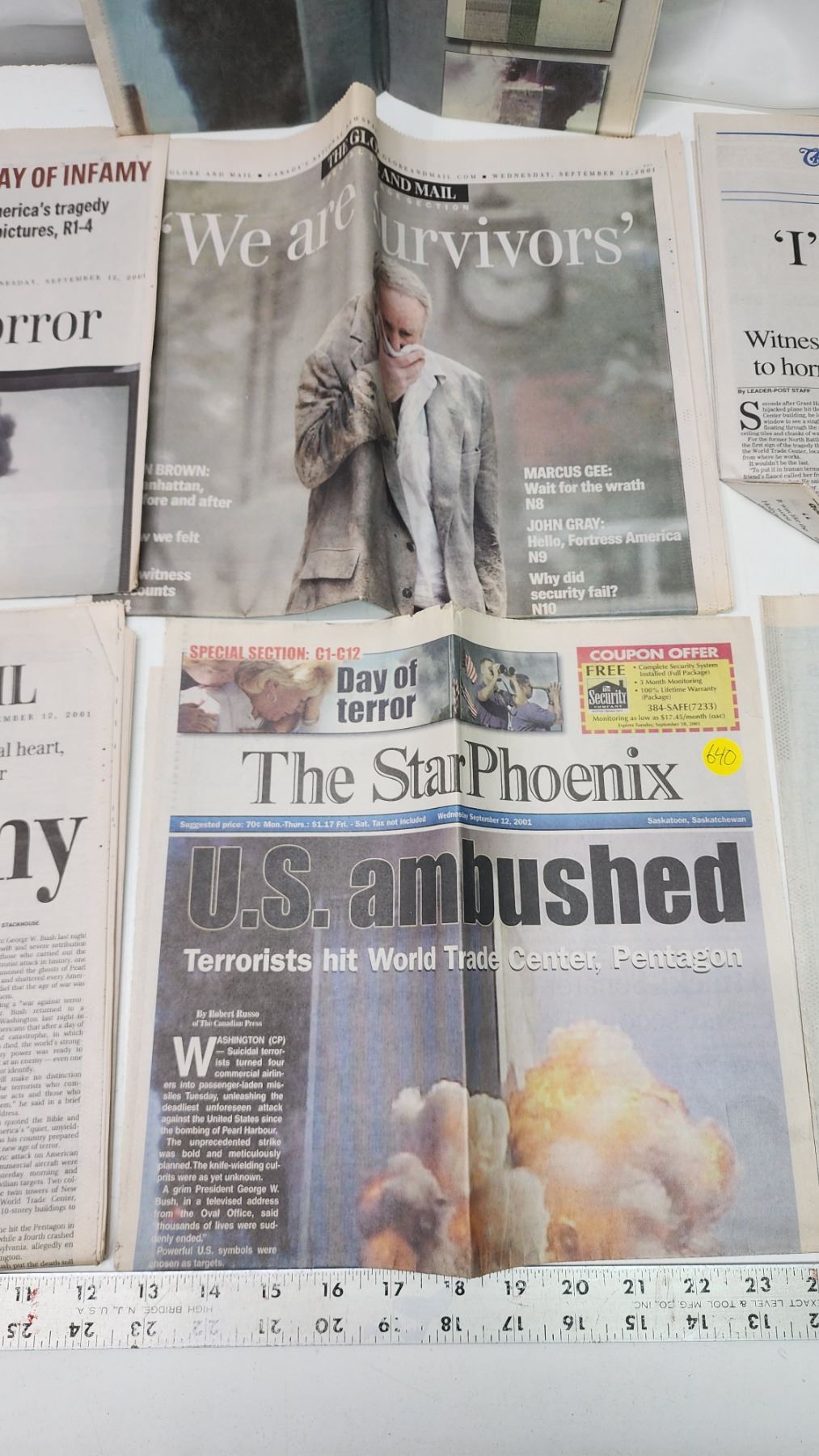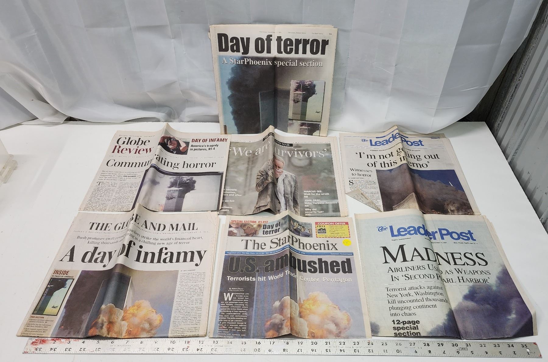 7 different Newspapers - Headlining Sept 12, 2001 - regarding 9/11