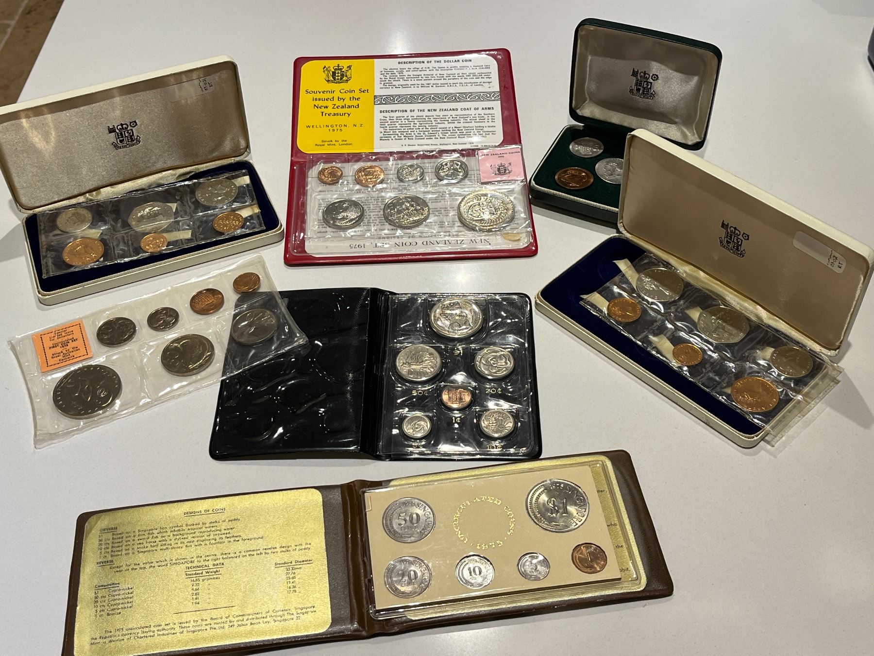 7 different set UNC coins (Singapore (x2), New Zealand, Australia, Isle of Man (x2 same year 1971), Cyprus)
