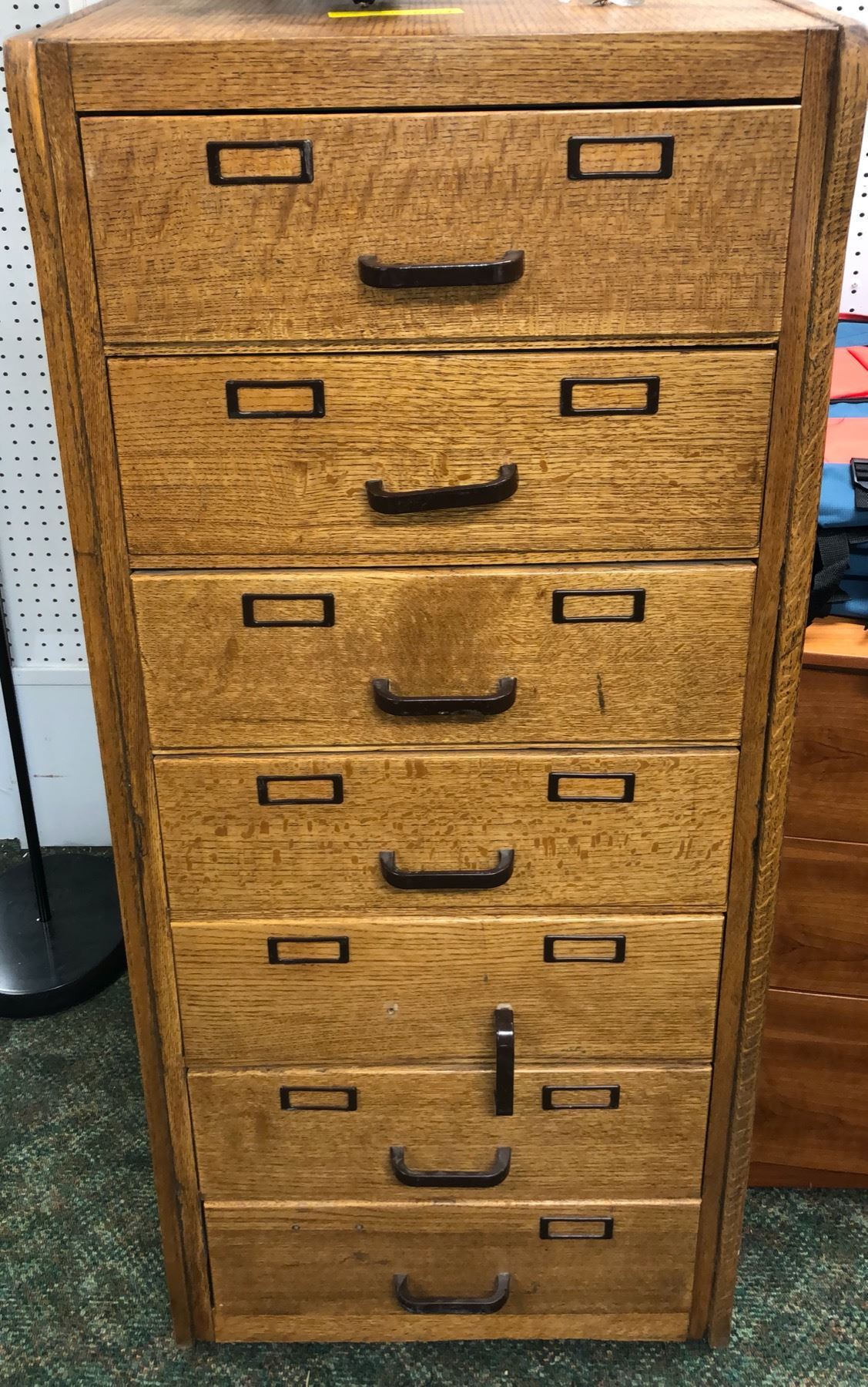 7 drawer wooden office filing cabinet - approx. 22 1/2in wide x 26in depth x 53in height