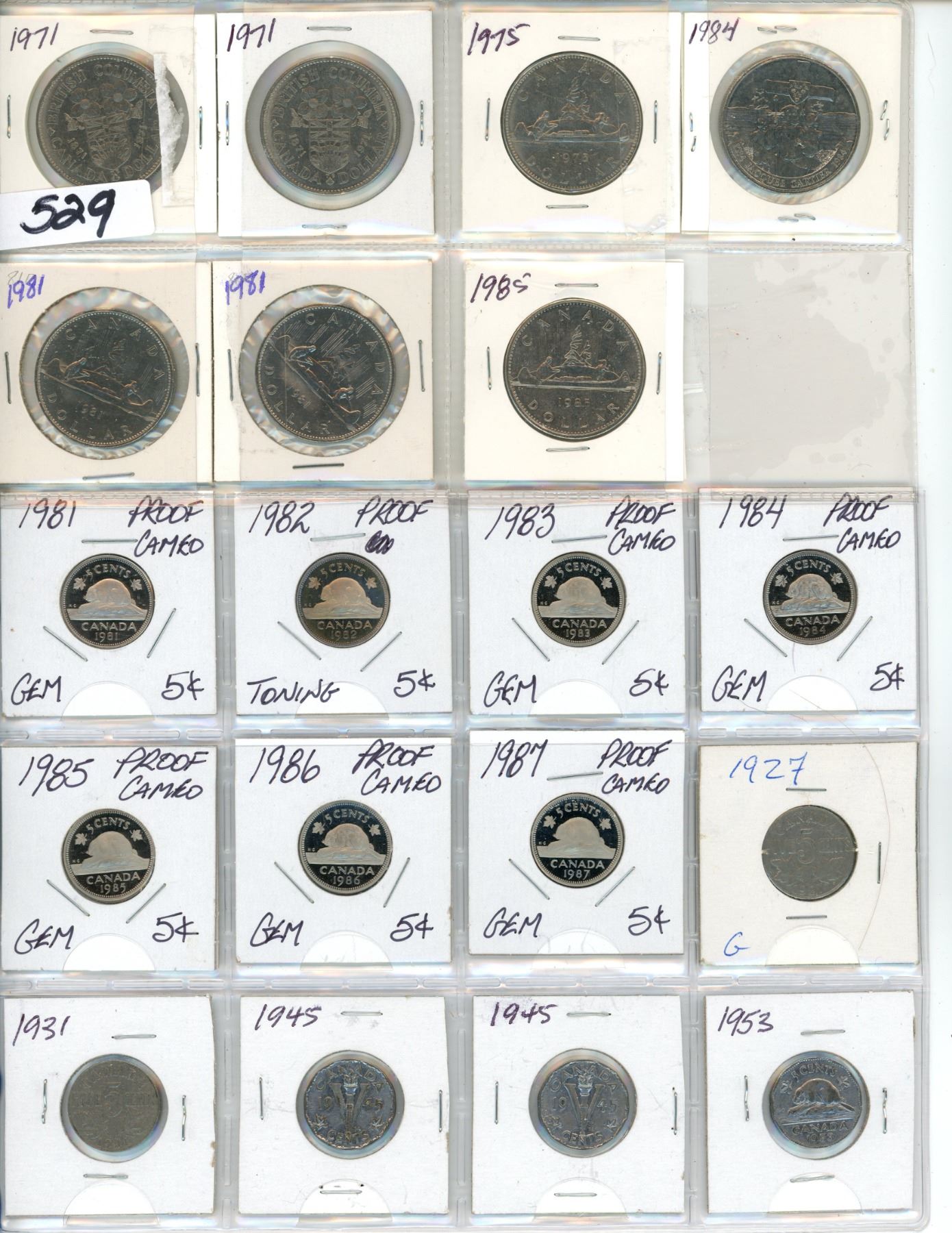 7 nickel dollars - proof nickels