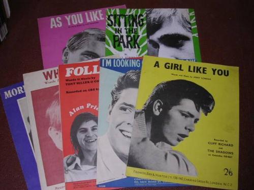7 orginal music sheets to include Cliff Richard, Adam Faith, Bobby Vee, ect all in excellent conditi