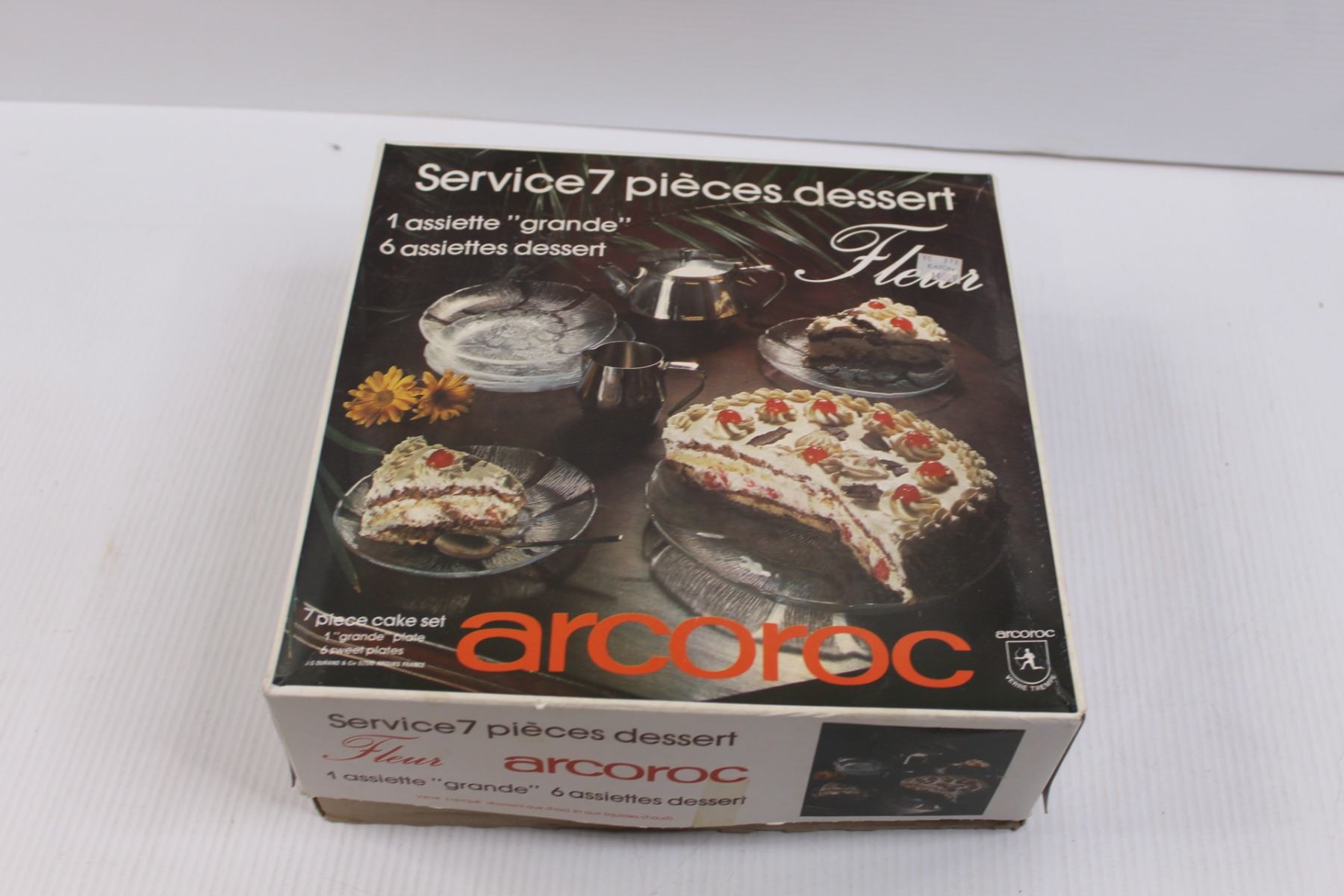 (7 pc) Vintage Fleur Arcoroc Dessert Set - Appears NIB