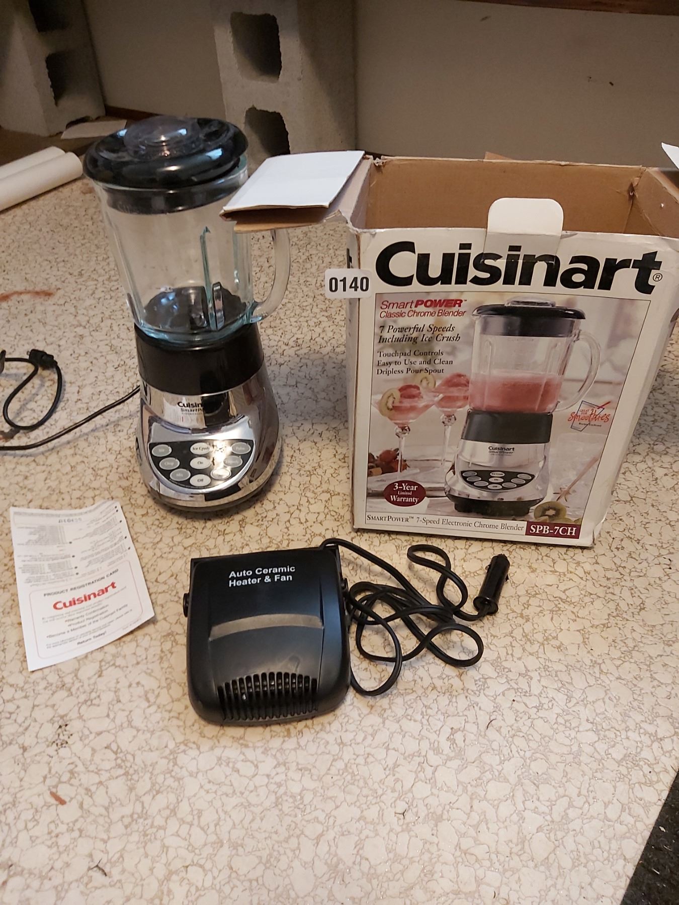 7 speed Cuisinart chrome blender, auto ceramic heater and fan
