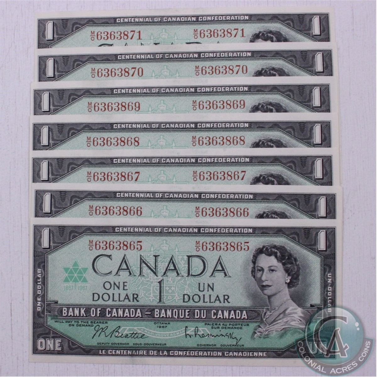 7 x 1967 $1.00 notes with consecutive serial numbers in UNC Condition.