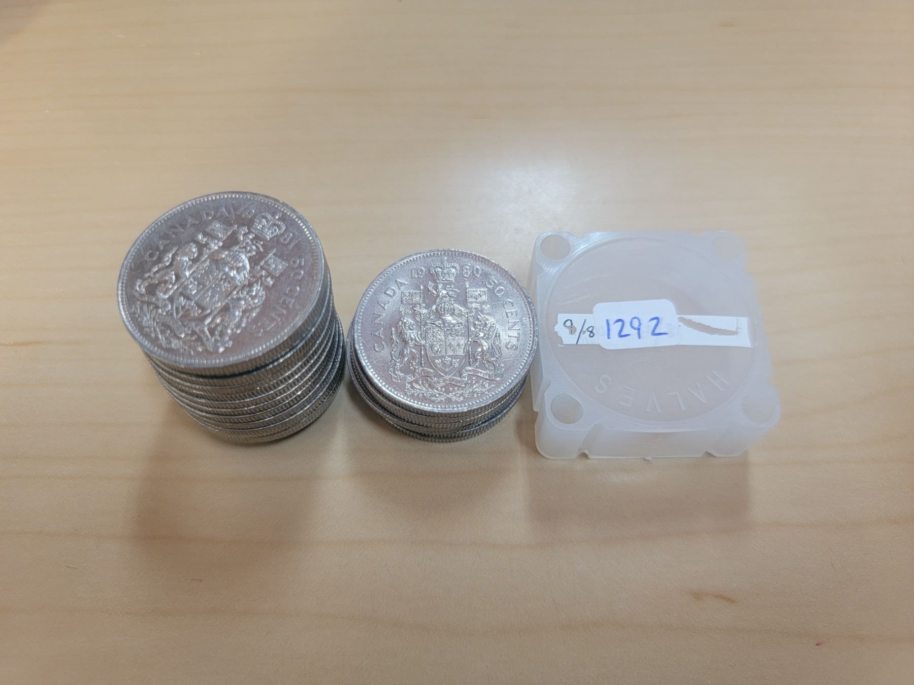 7 x 1980 + 14 x 1981 roll of fifty cents coins - uncirculated