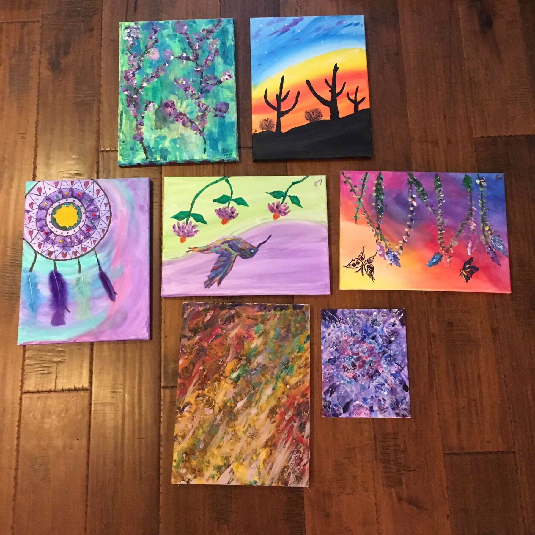 7 x Original Art - largest is 16 inches x 12 inchesť