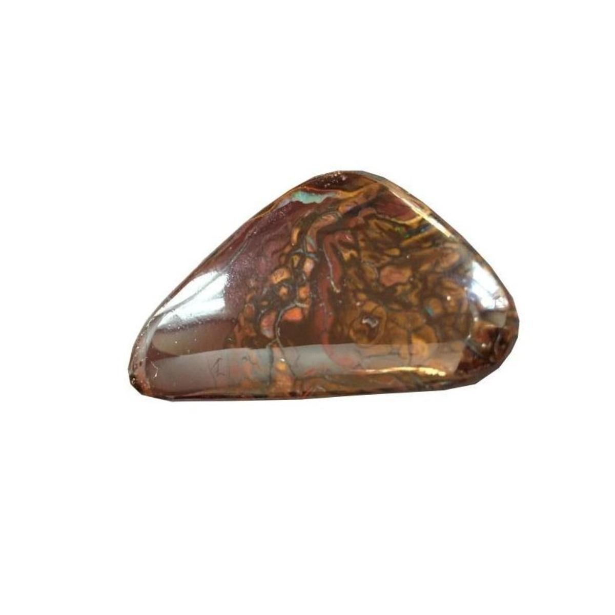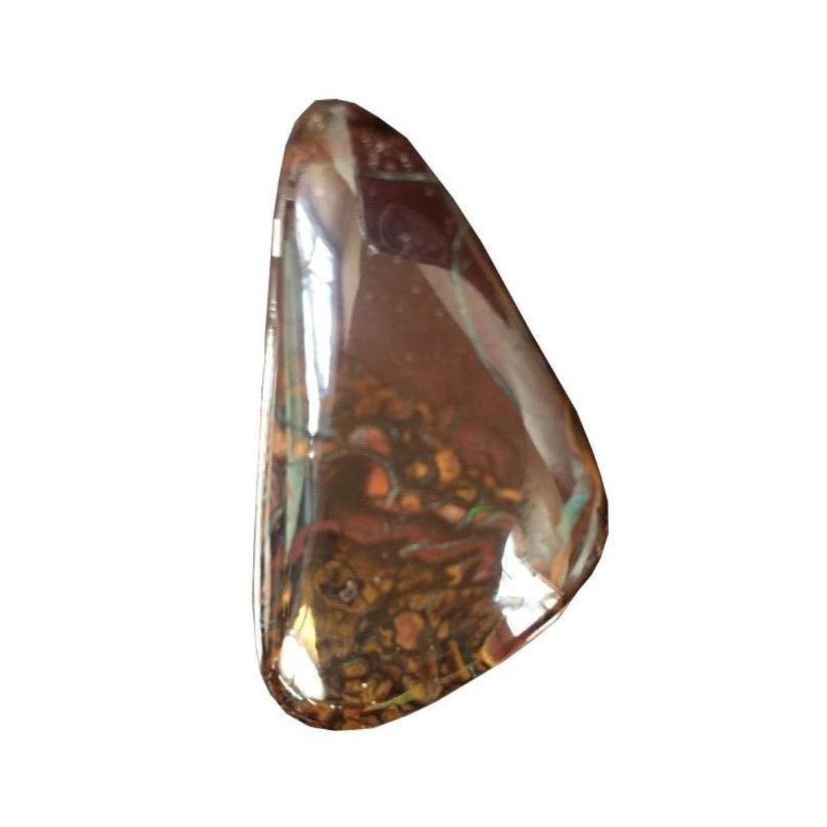 Queensland Australia. Yowah nut boulder opal. Natural abstract shape. Golden brown, high polish, beautiful swirled pattern with flashes of green. 41mm X 23mm X 8mm thick.