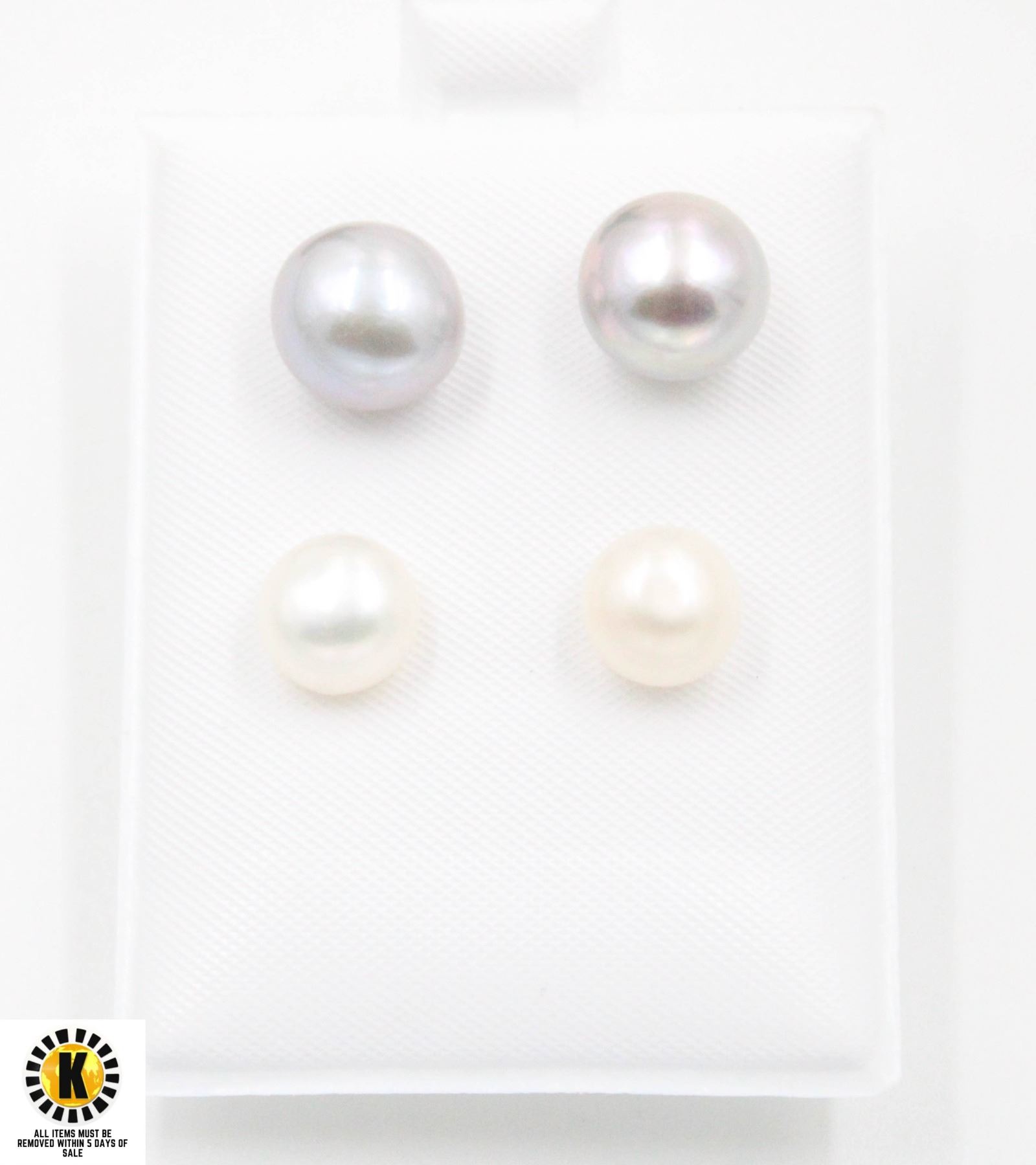 .925 STERLING SILVER /7.6-9 MM/WHITE & GRAY