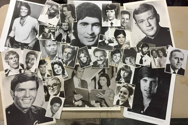 An autographed collection (~41) of black and white and color photos of television hosts, award winning stars and landmarks ca. 1970-1980. This collection also includes memorable and personal wallet sized photos. The actors are Ellen Burstyn, Glen Campbell, Jill Clayburgh, Richard Chamberlain, James Coburn, Olivia Cole, Robert Conrad (autographed), Billy Davis Jr. and Marilyn McCoo from the musical group The Fifth Dimension, actor and host John Davidson, Henry Fonda, Louis Gossett Jr. , Jane Fonda, Rock Hudson, Jim Hutton, Diane Keaton, Alan King, Michael Learned, Hal Linden, Priscilla Lopez, Mary MacGregor, the stars of Adam-12 are Kent McCord and Martin Milner, Rody McDowell, Walter Pidgeon, Katherine Ross, Rob Reiner, Sidney Poitier from a scene in Let's Do It Again, Michael Sarrazin, David Steinberg, Mel Tillis, Trish Van Devere, Jimmie Walker Linsay Wagner and a publicity photo from the TV show "Good Times." Photos are in fair to good condition with folds, creases, markings, stains and normal wear and tear. Some images include photographic reproduction of the artists original autograph. (approx. 2 x 4 in - 8 x 10 in).