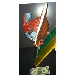 Offered here is a really cool and nicely painted animatronic pneumatic turkey puppet from the 1970's. This one is nearly identical to lot 21, but this is a later mid 70's version with plastic parts. It is a unique working puppet with the pneumatic rig intact.