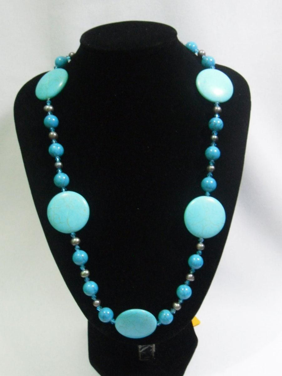 700CTW BLUE TURQUOISE AND BLACK PEARL NECKLACE;AUTHENTI **|**|** 700CTW BLUE TURQUOISE AND BLACK PEARL NECKLACE;AUTHENTIC PHILIPPINE PEARLS;SIZE-20INCH ; MSRP: $75