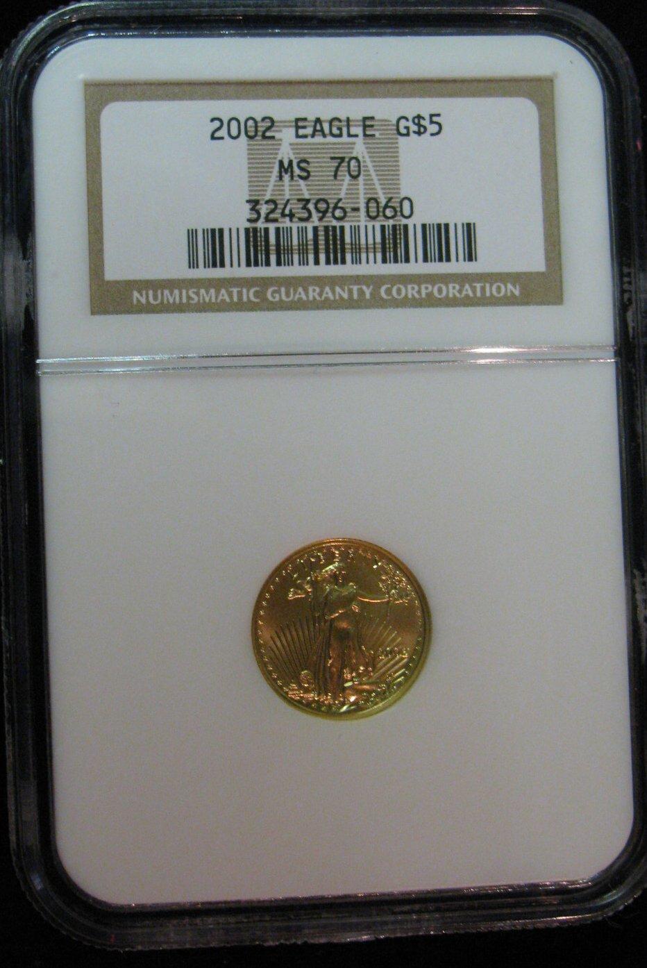 701. 2002 American Eagle $5 Gold NGC slabbed MS 70. 1/10 oz. Gold.