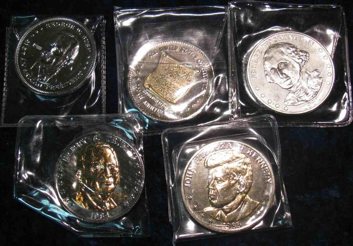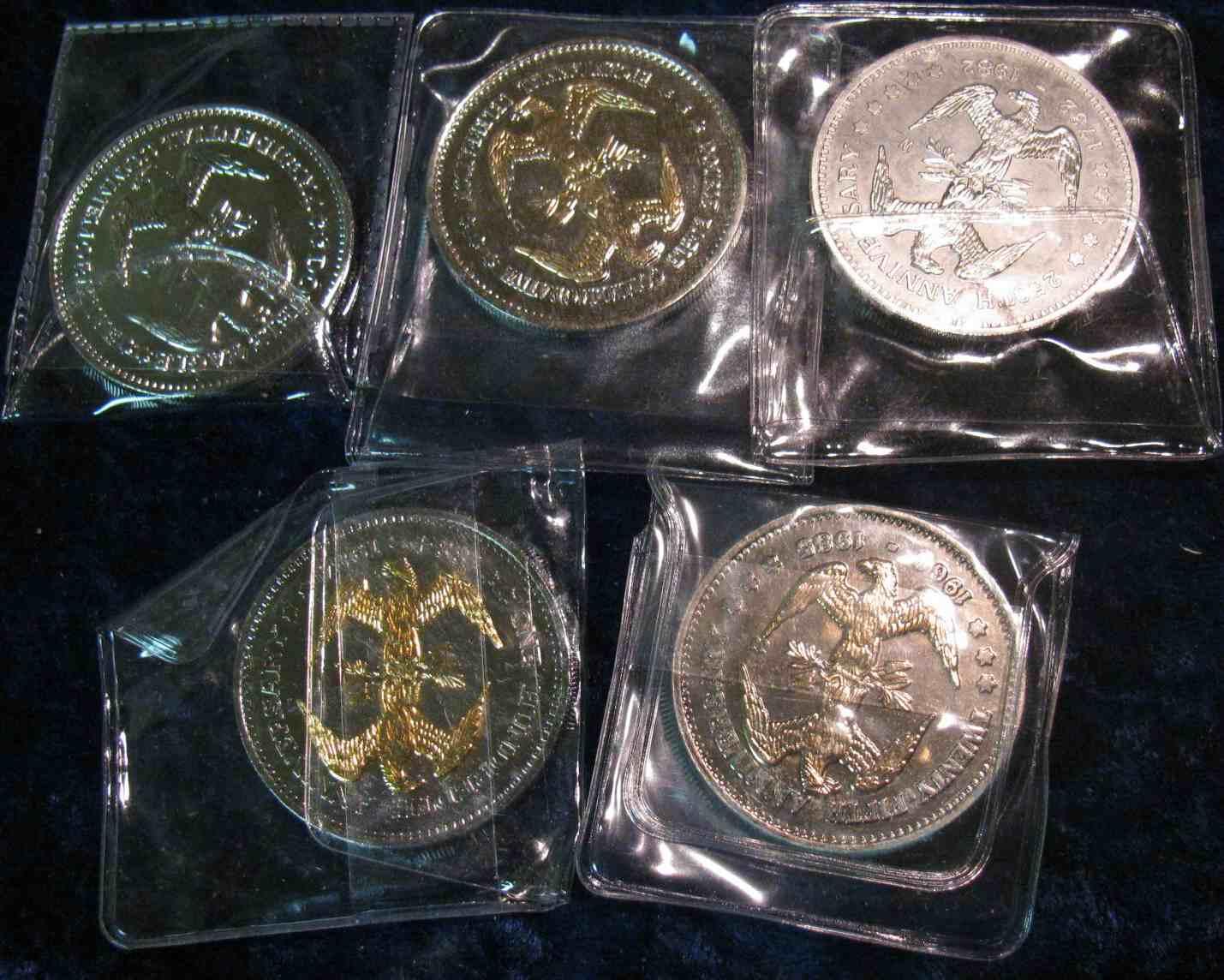 703. (5) Different Double Eagle Commemorative Coins. Some with gold highlighting.