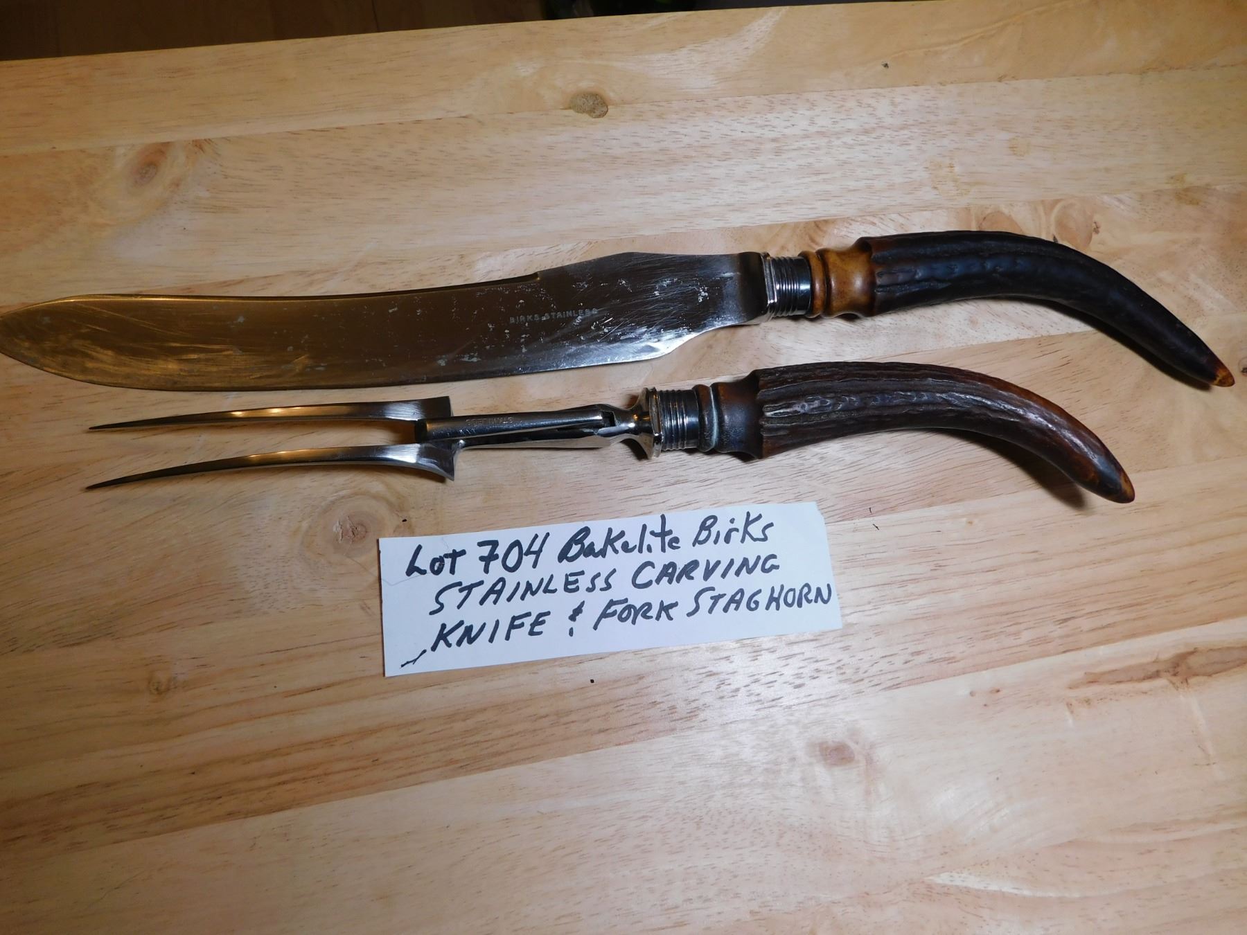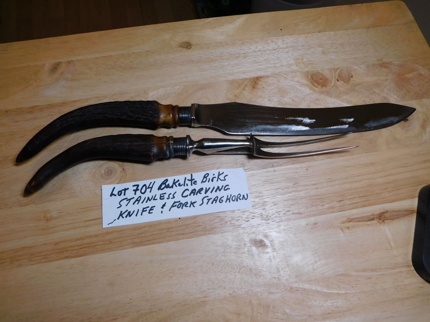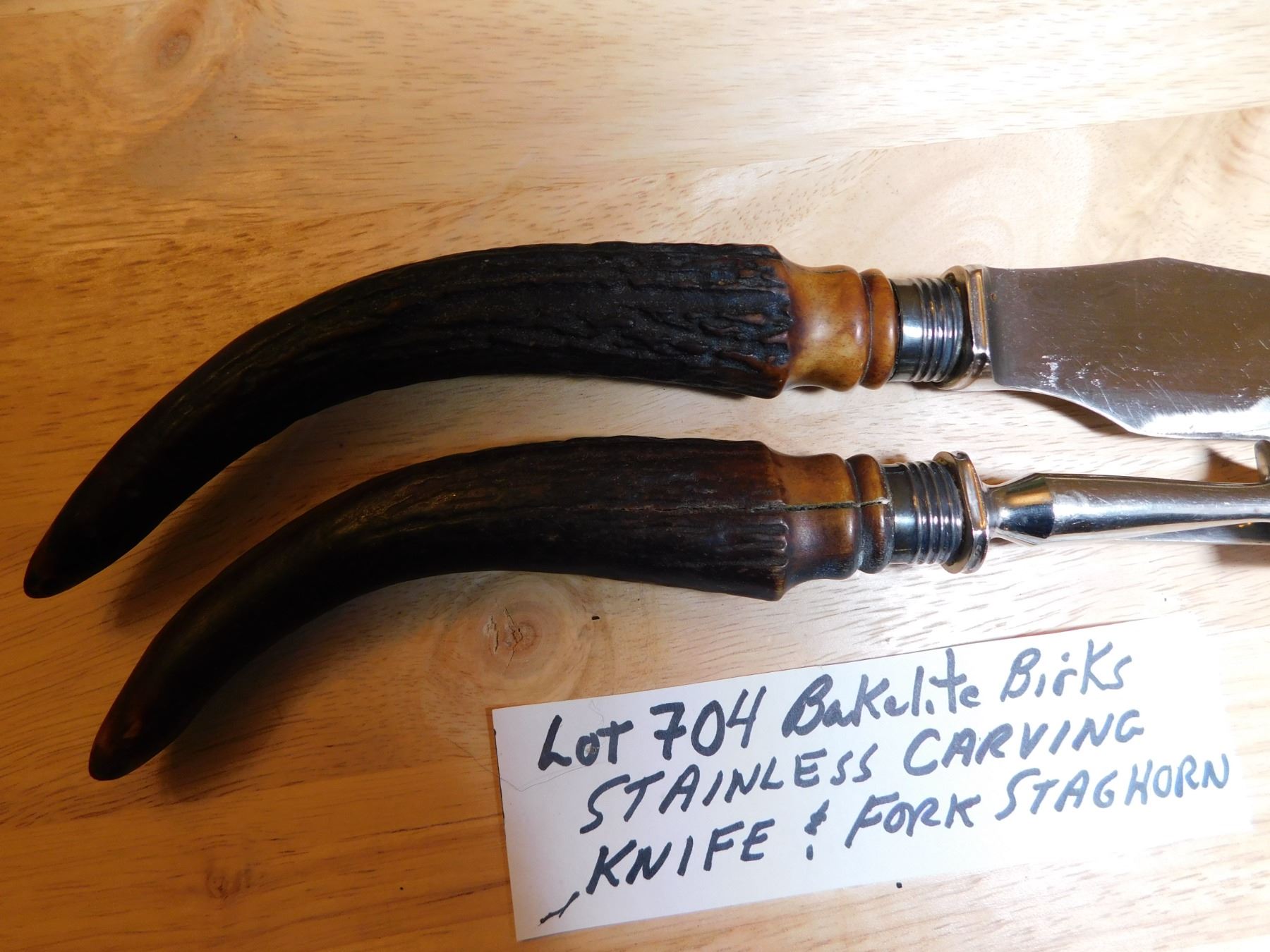 704 REAL? BAKELITE? HORN CARVING FORK & KNIFE