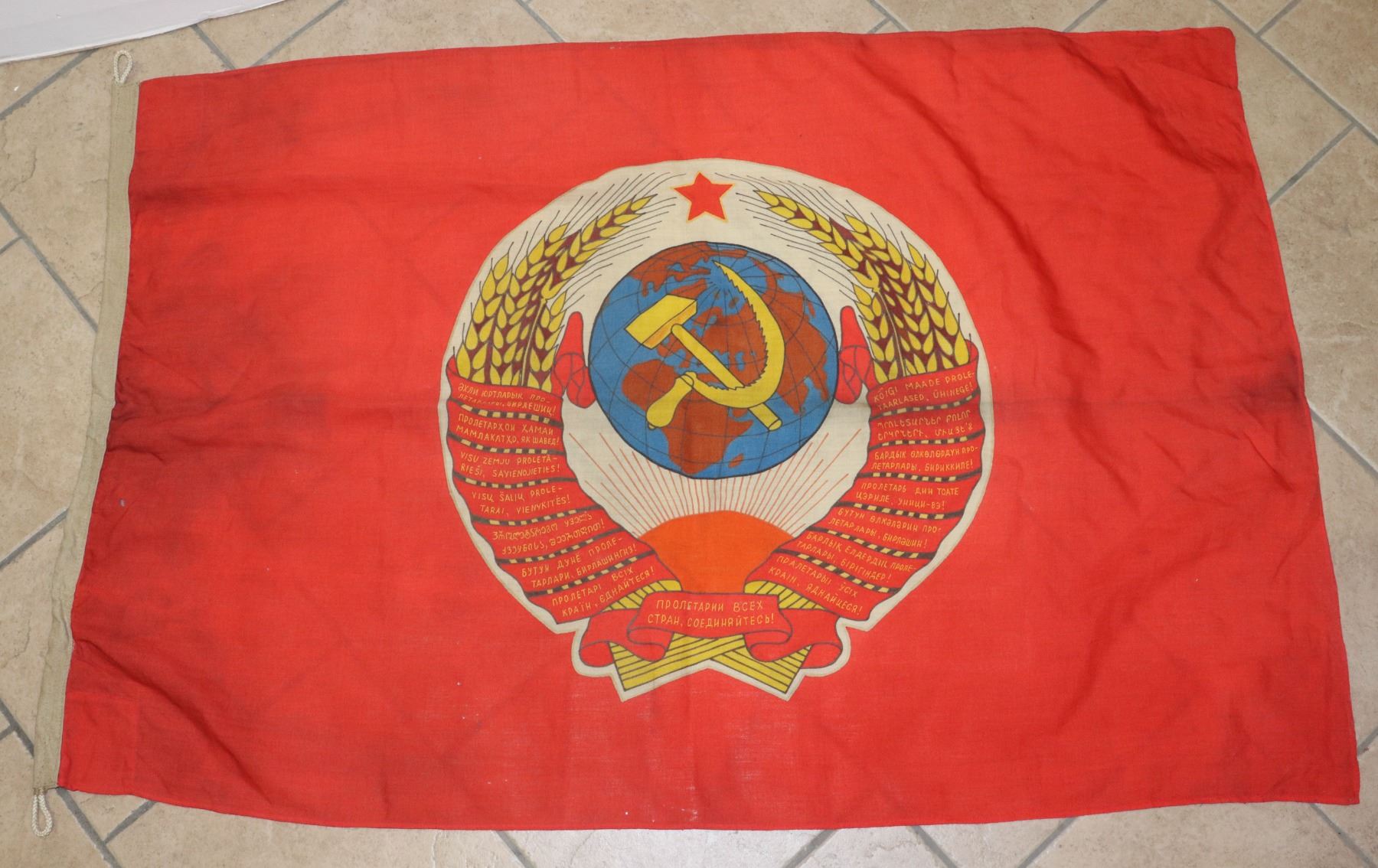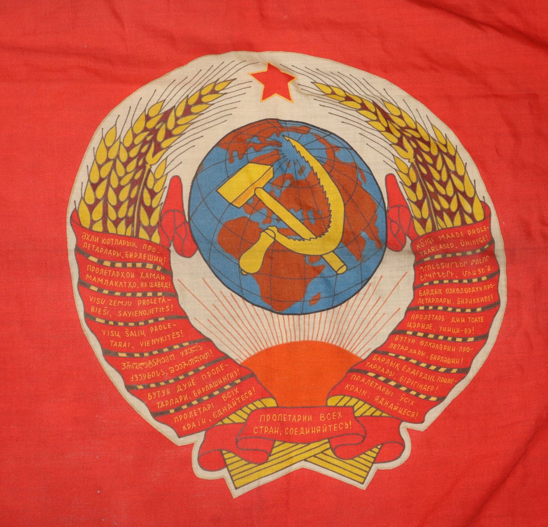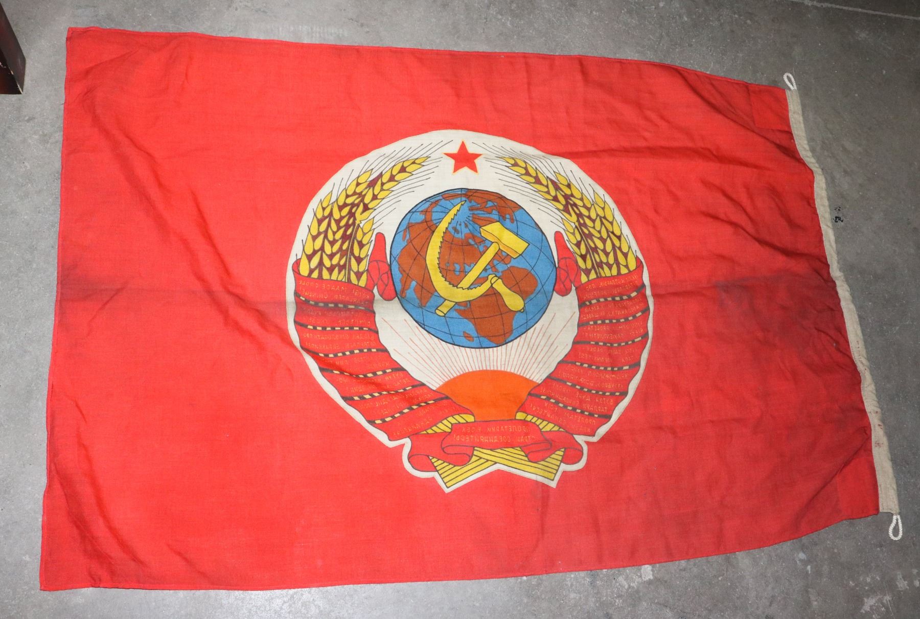 59 X 35 INCHES IN SIZE DOUBLE SIDED MID 20TH CENTURY COLD WAR ERA FLAG SOVIET RUSSIAN