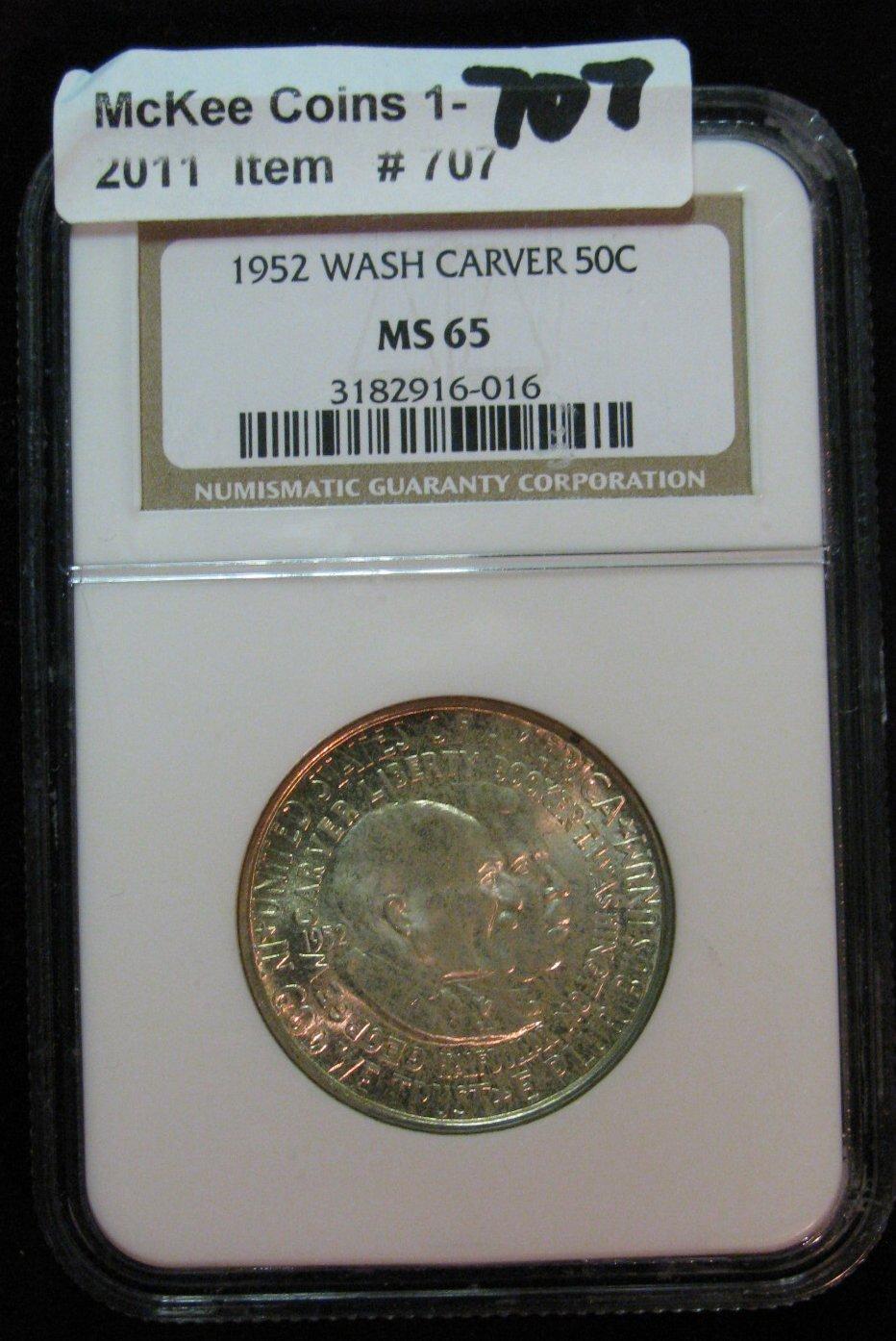 707. 1952 P Washington/Carver Commemorative Half Dollar. NGC slabbed MS 65.