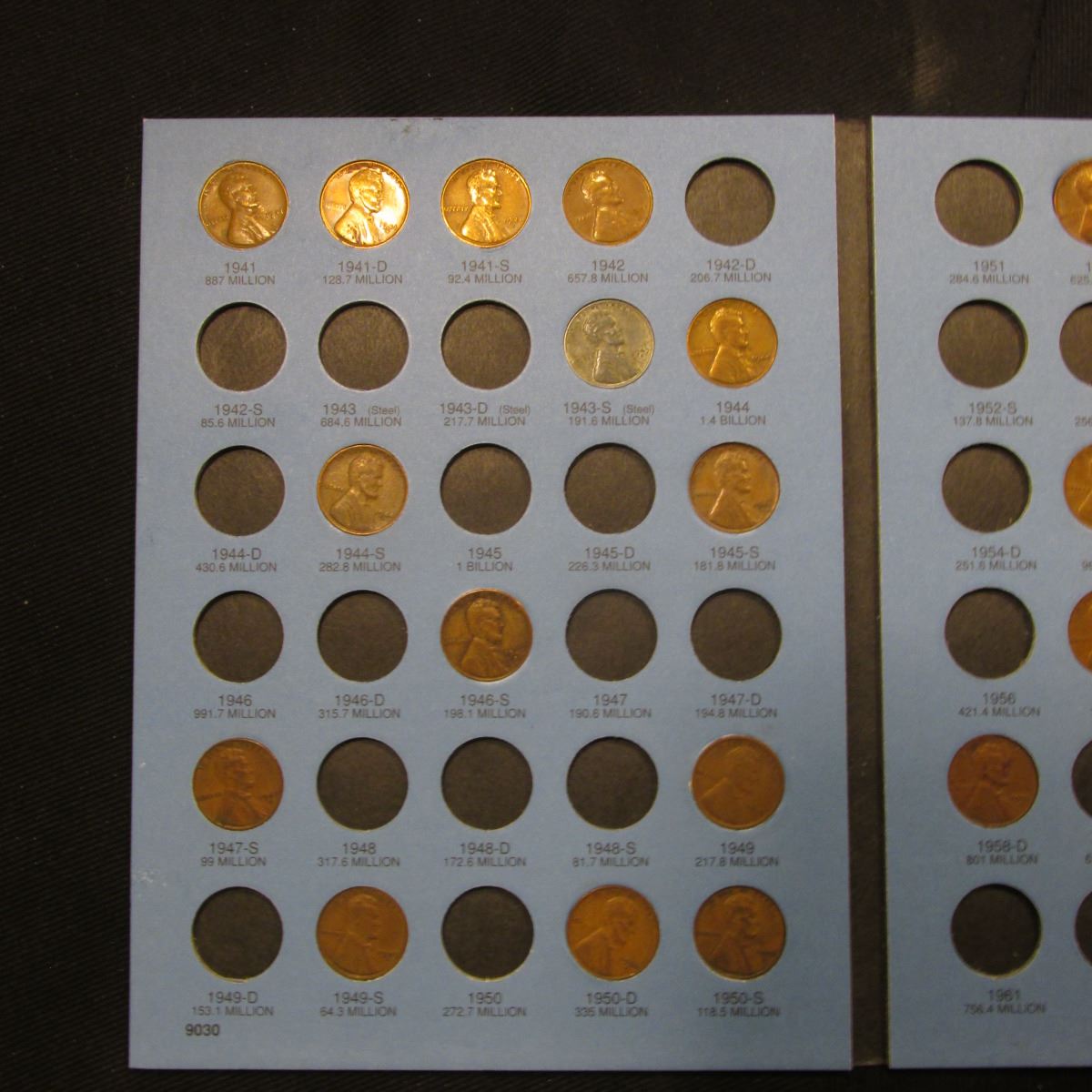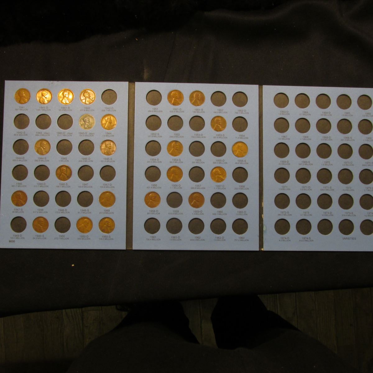 709.1941-59 Partial set of Lincoln Cents in a Blue Whitman Coin folder.