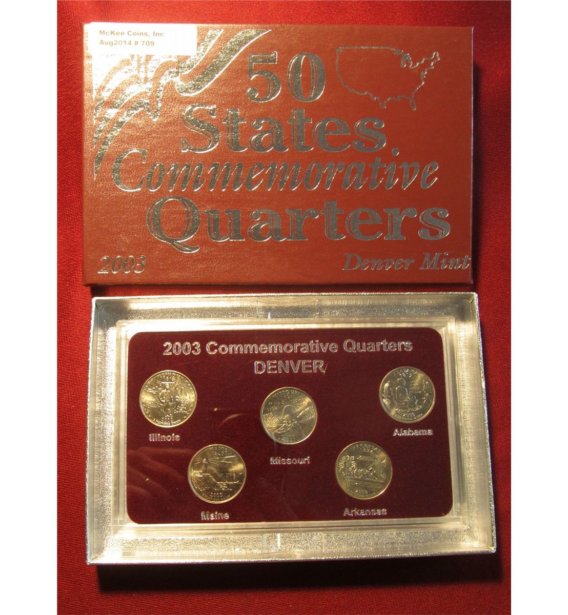 709. 2003 Denver Mint Five-Piece Set of Statehood Quarters in a specialty holder. Gem BU .