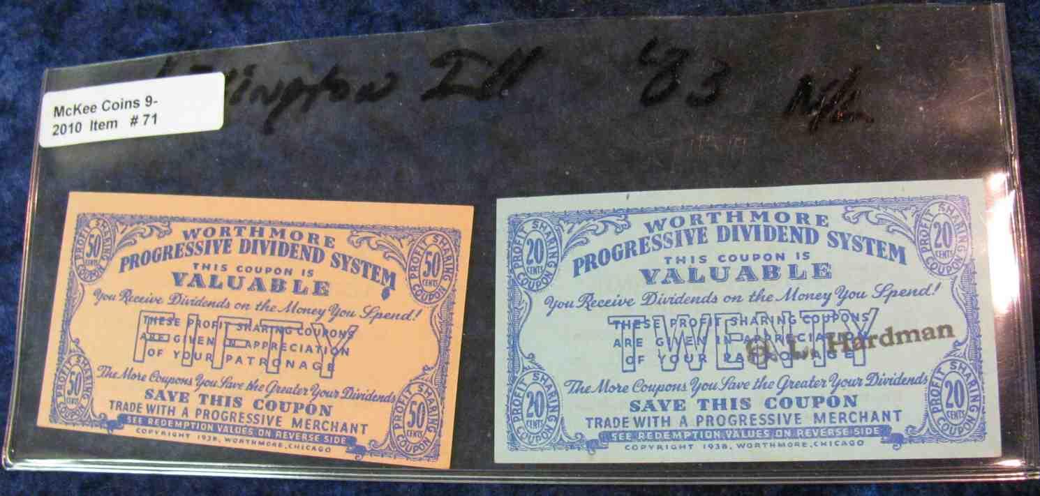 71. 1938 Depression Scrip "Lexington Merchants" 50 & 20. Mint.