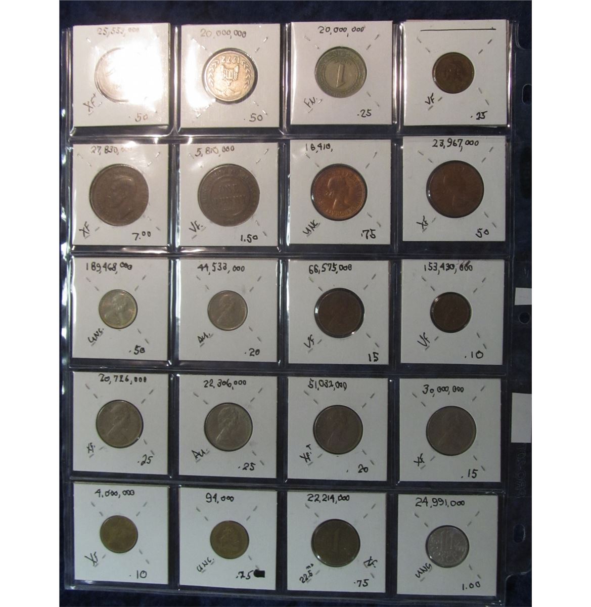 71. (20) World Coins in a Plastic Page identified with KM No., Metal size, & etc. All different. Inc