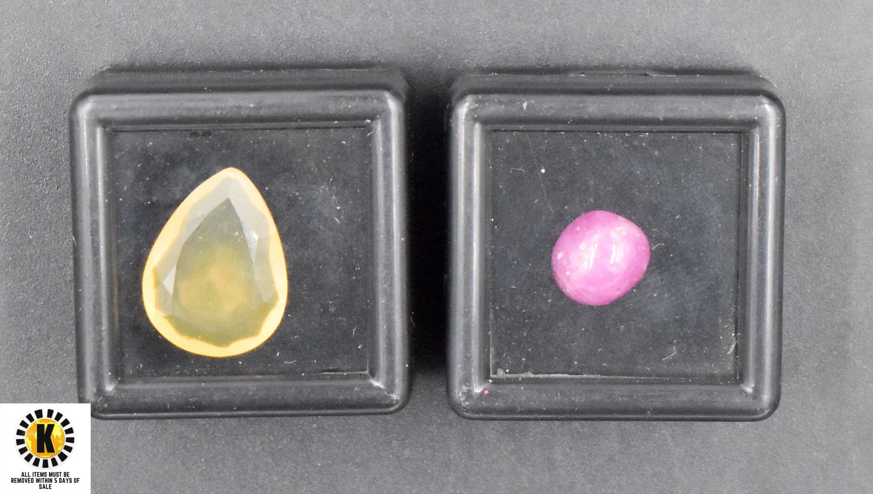 UNTREATD YELLOW OPAL 12.9X 17.3MM /RUBY HEATED CLASS FILLED 7.9X9.1MM