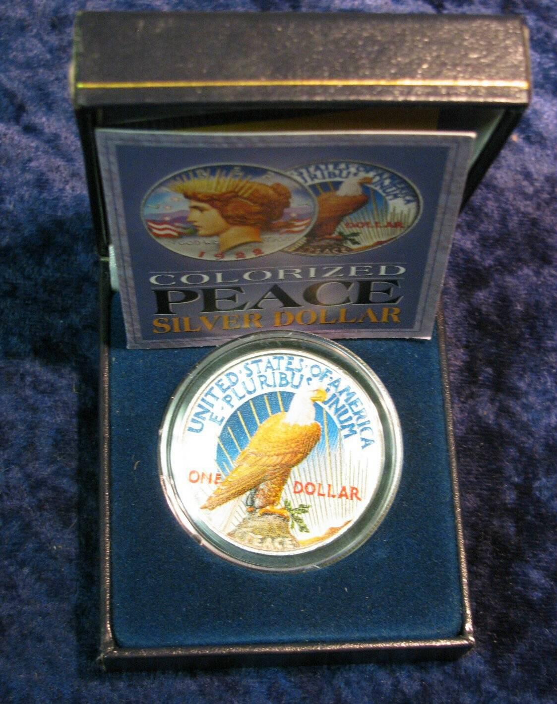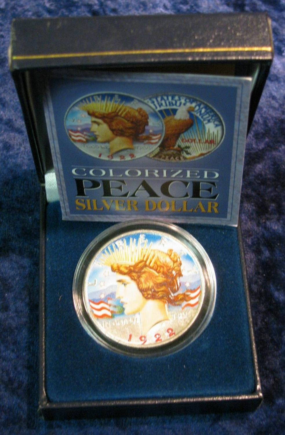 710. 1922 D U.S. Peace Silver Dollar Colorized in a case.