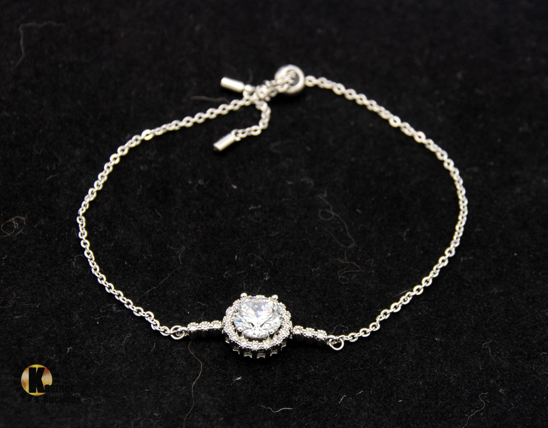 CUT MOISSANITE STONE VVS D COLOR SET IN CENTER SURROUNDED BY ROUND HALO SET IN 925 SILVER BRACELET **ALL ITEMS MUST BE REMOVED BY 5PM SATURDAY, OCTOBER 5TH 2024. ALL REMAINING ITEMS WILL BE SUBJECT TO A $6.00 PER DAY STORAGE CHARGE. ANY ITEMS REMAINING AFTER MONDAY, OCTOBER 21ST 2024 WILL BE CONSIDERED FORFEITED. NO REFUNDS WILL BE ISSUED FOR FORFEITED ITEMS. TO SCHEDULE A PICK UP APPOINTMENT CLICK HERE