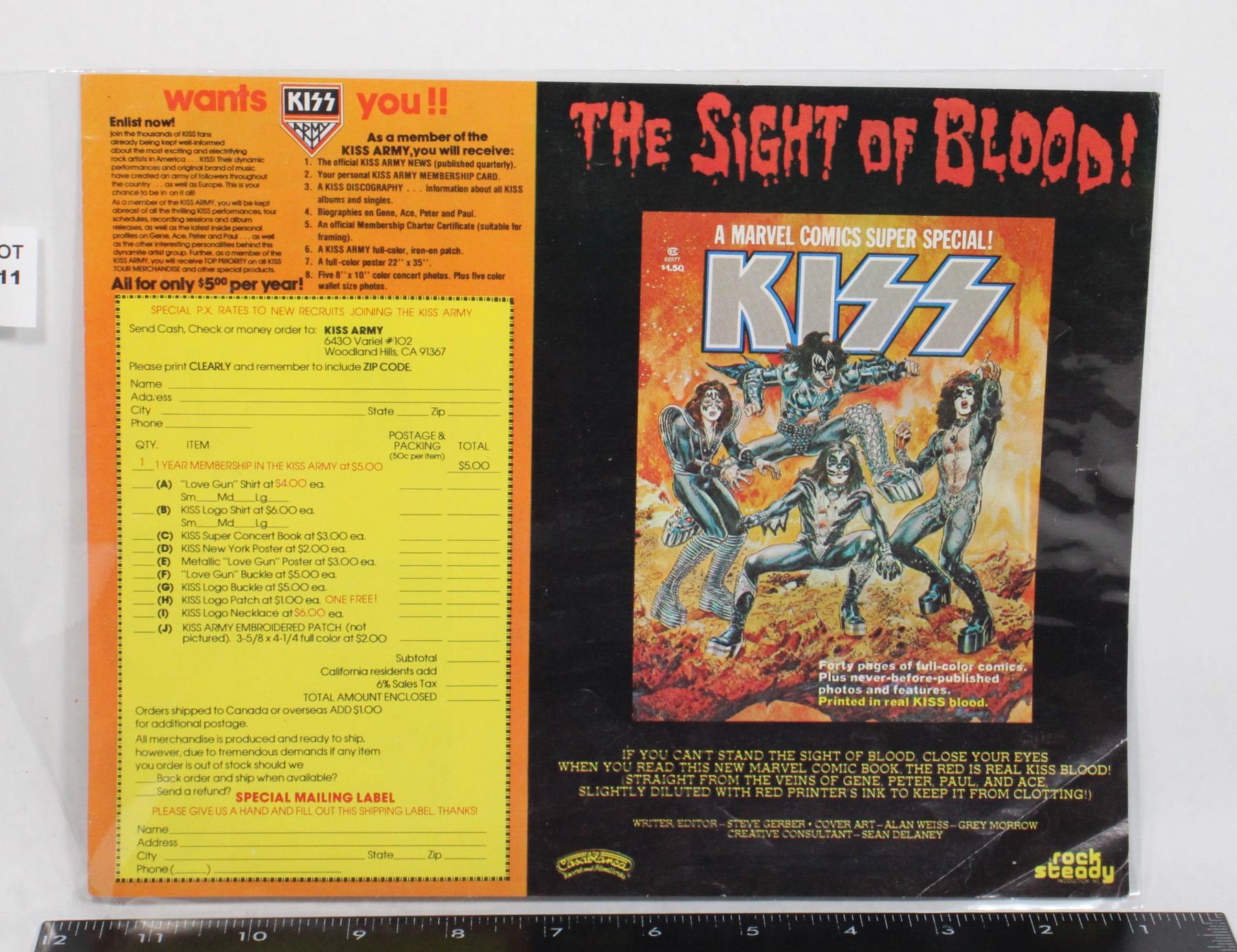 VINYL INSERT FROM 1977 LOVE GUN ALBUM KISS COMIC BOOK ADVERTISING DOUBLE SIDED 1977 KISS MEMORABILIA