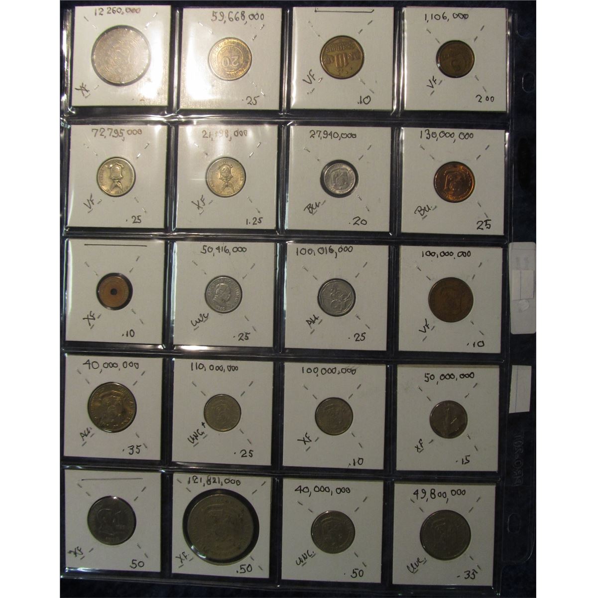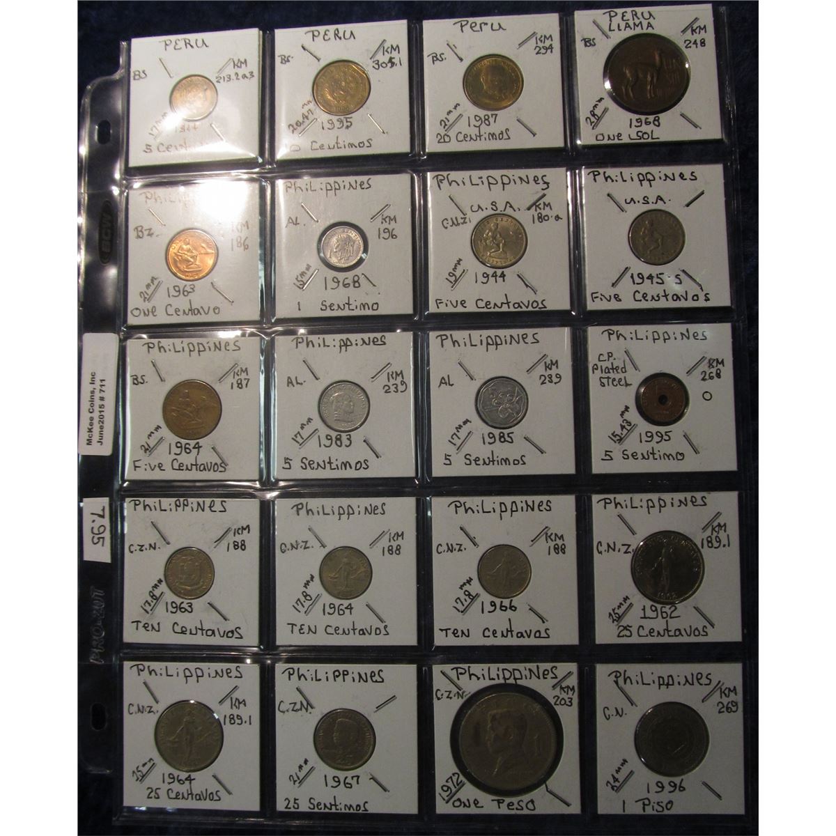 711. World Coins, 20 in page, all identified and from Peru & Philippines. KM value $7.95.