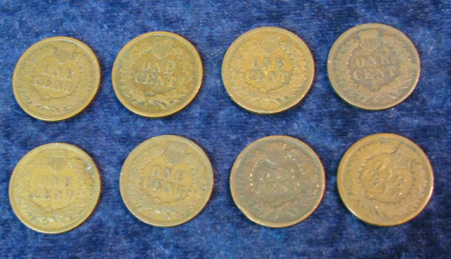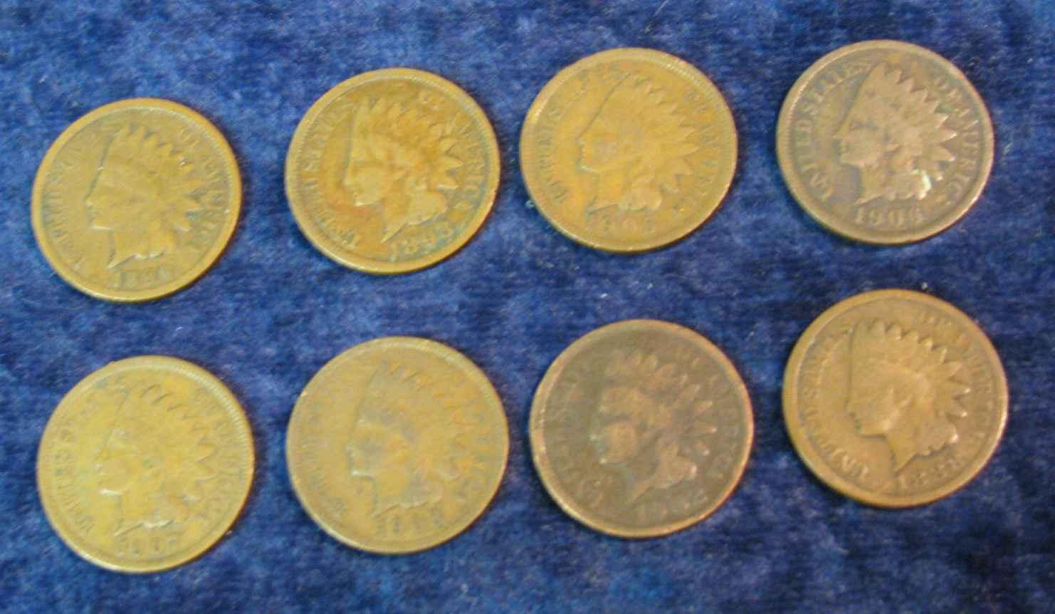 712. 1888, 90, 93, 1902, 03, 05, 06, & 07 Indian Cents. G-VG. (8 pcs.).