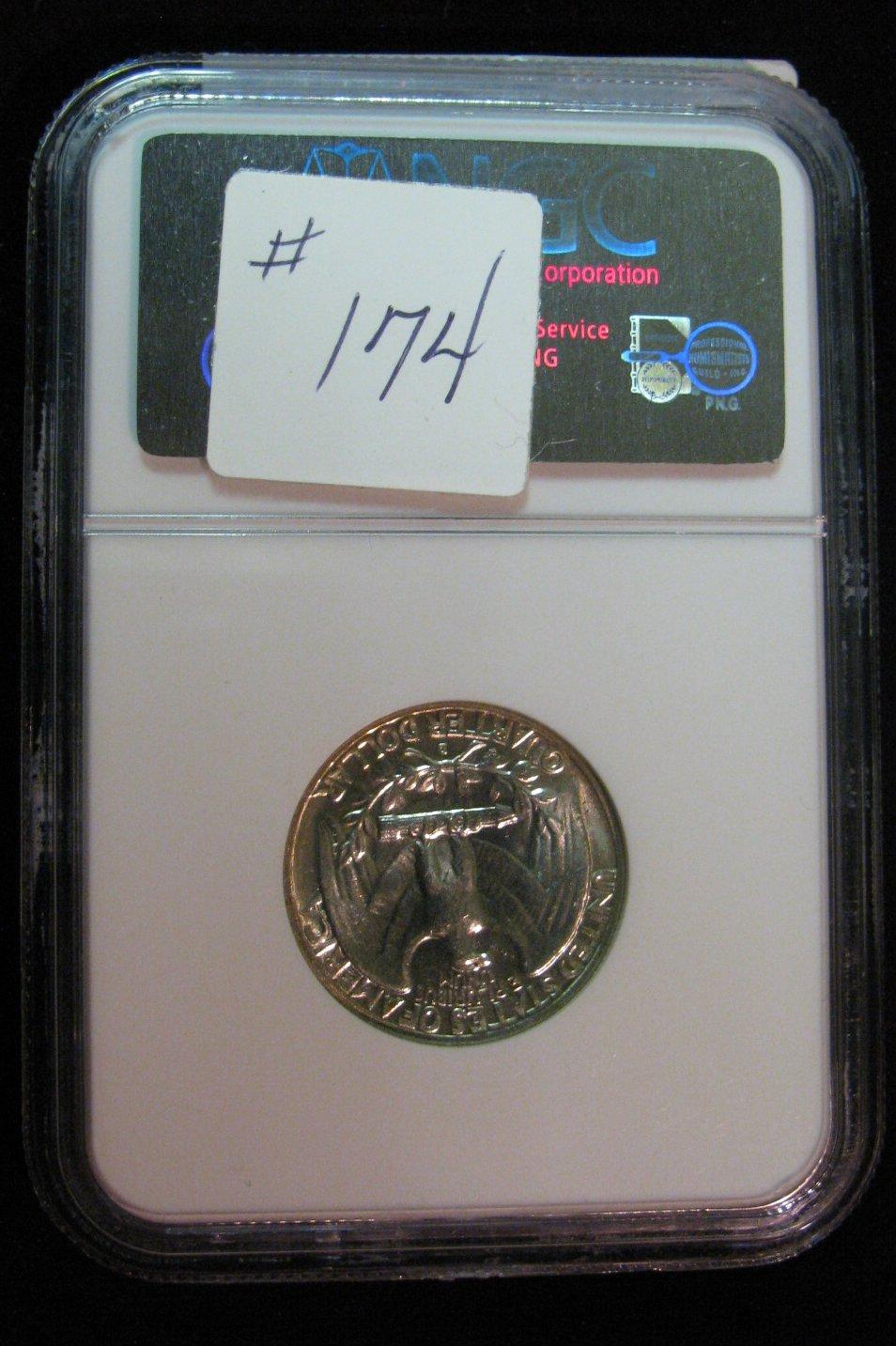 713. 1955 D Silver Washington Quarter. NGC slabbed MS 64.
