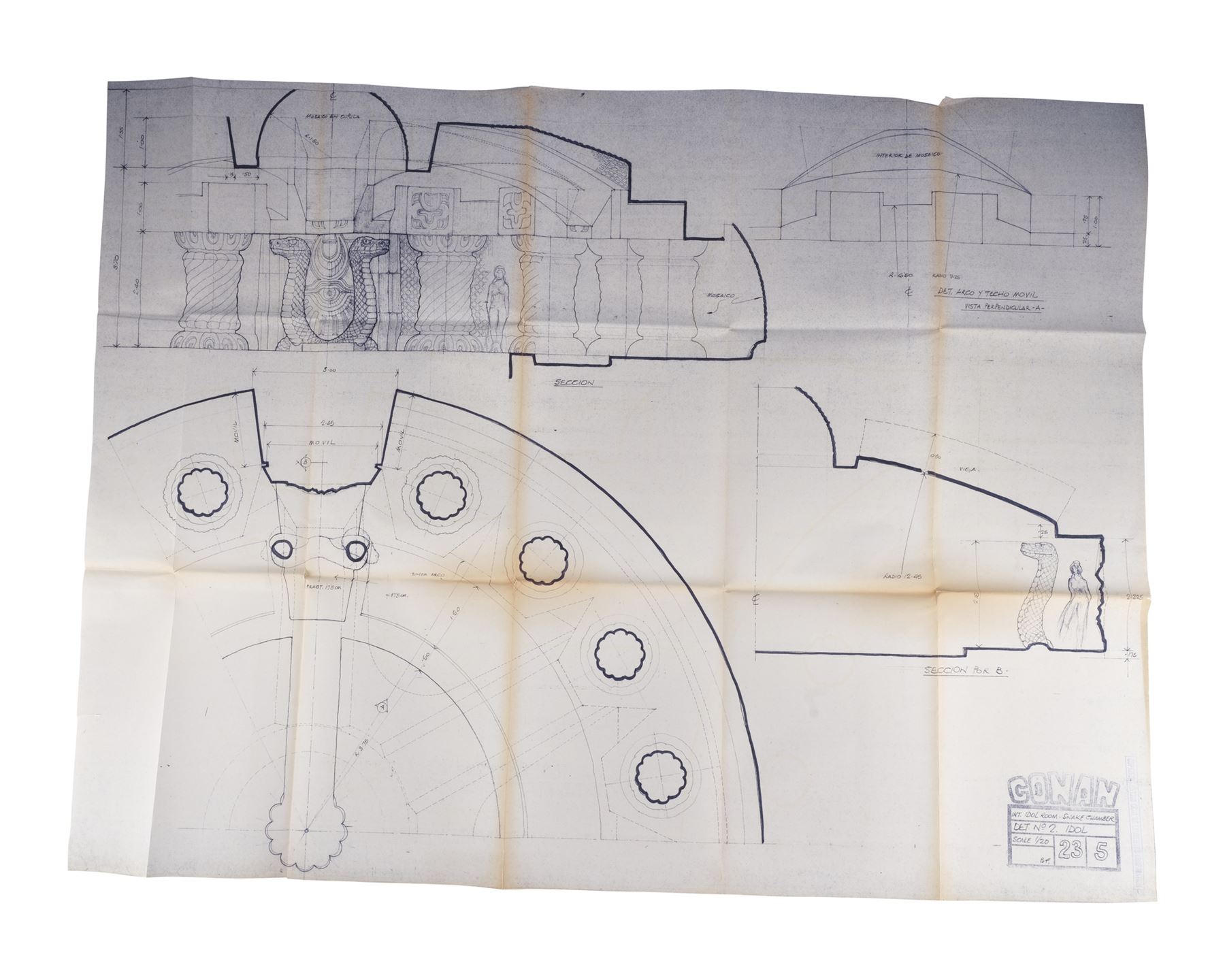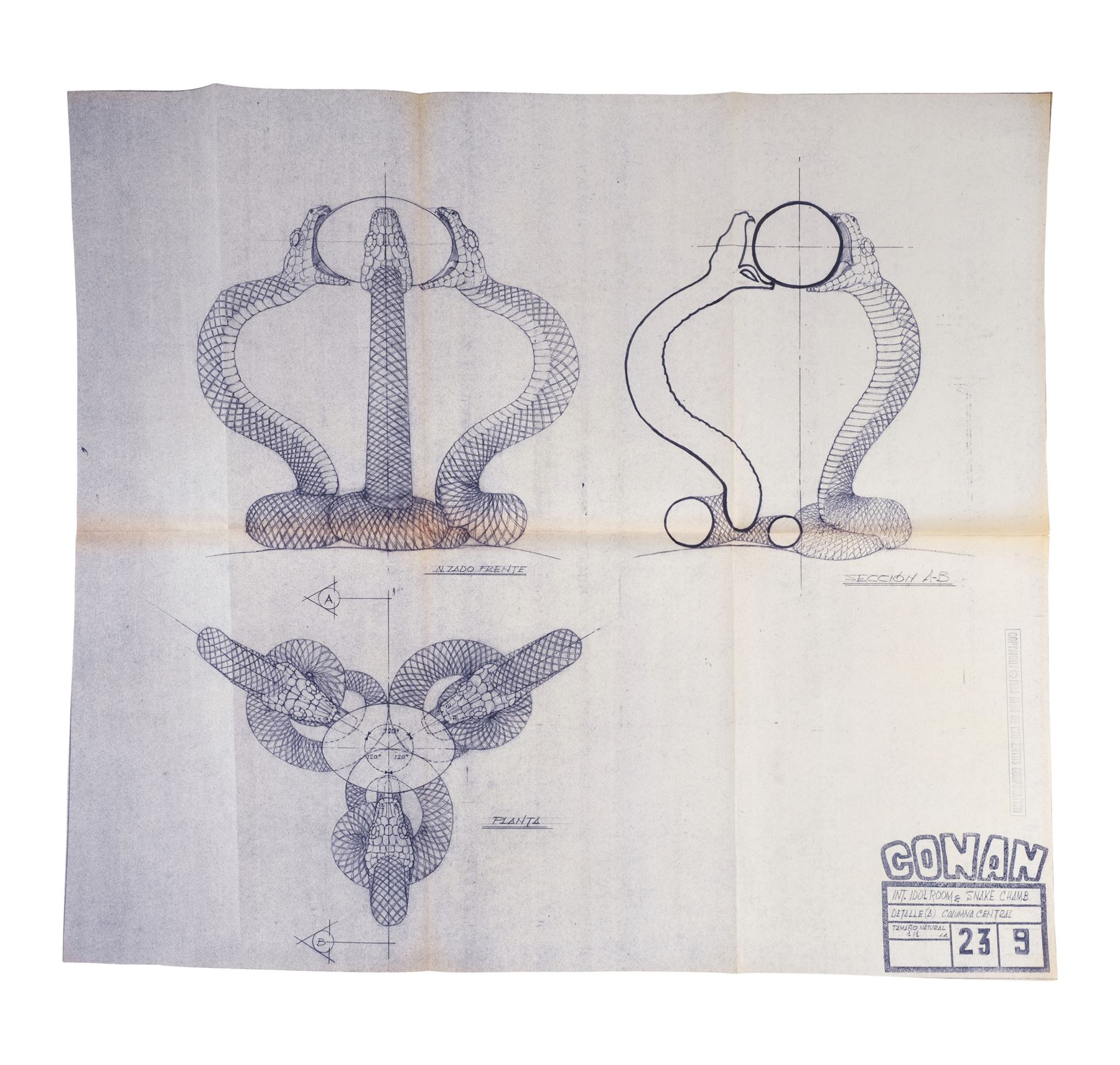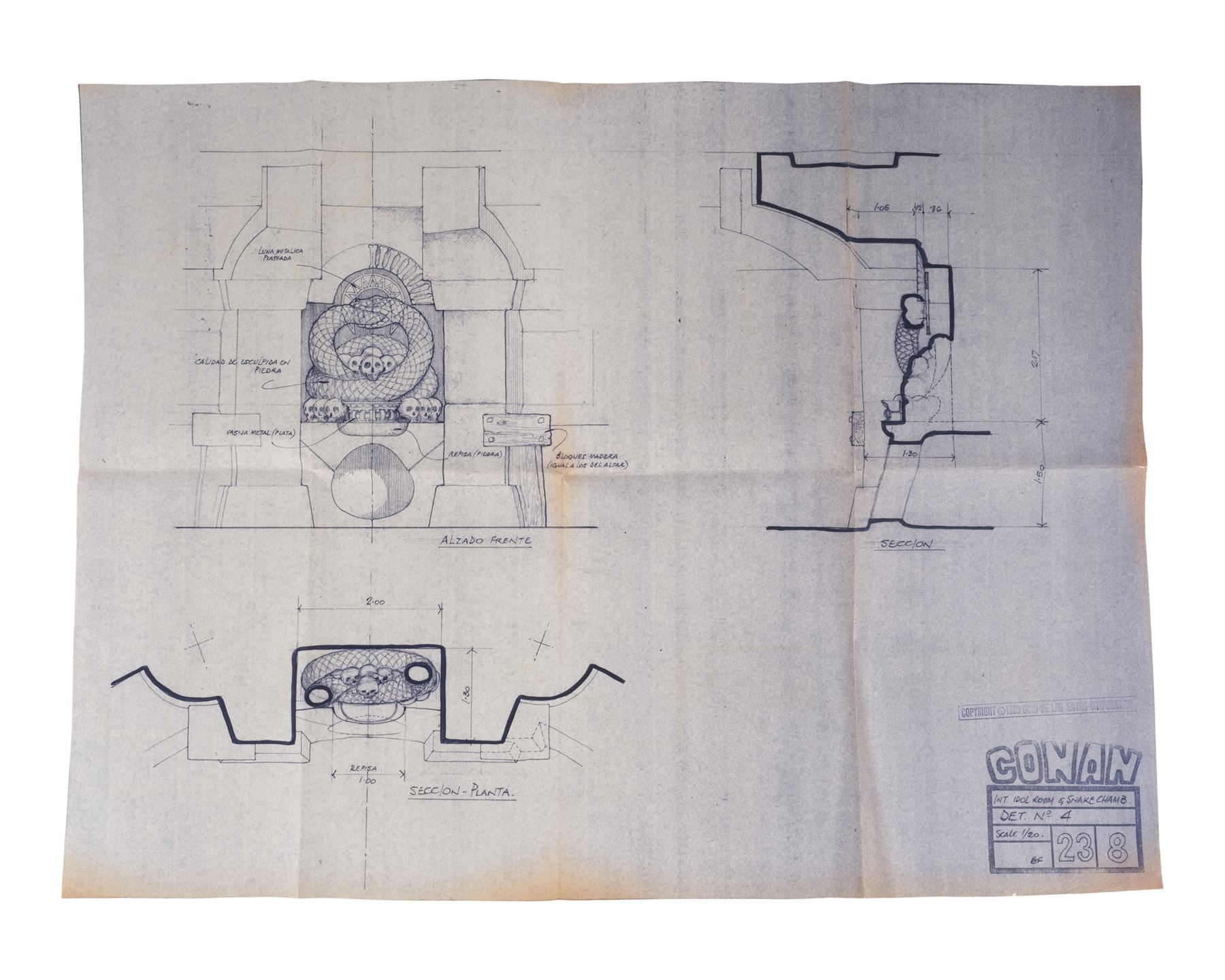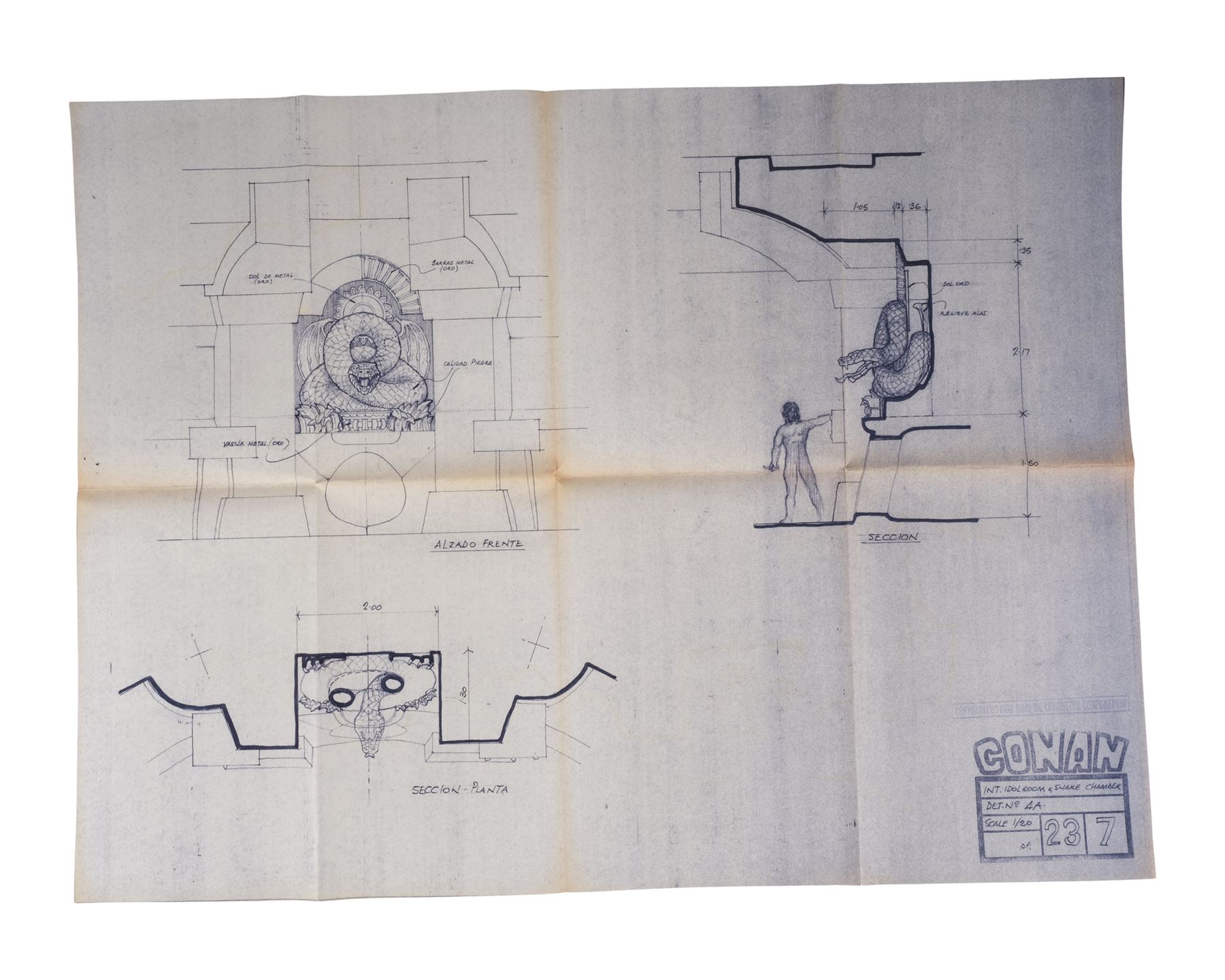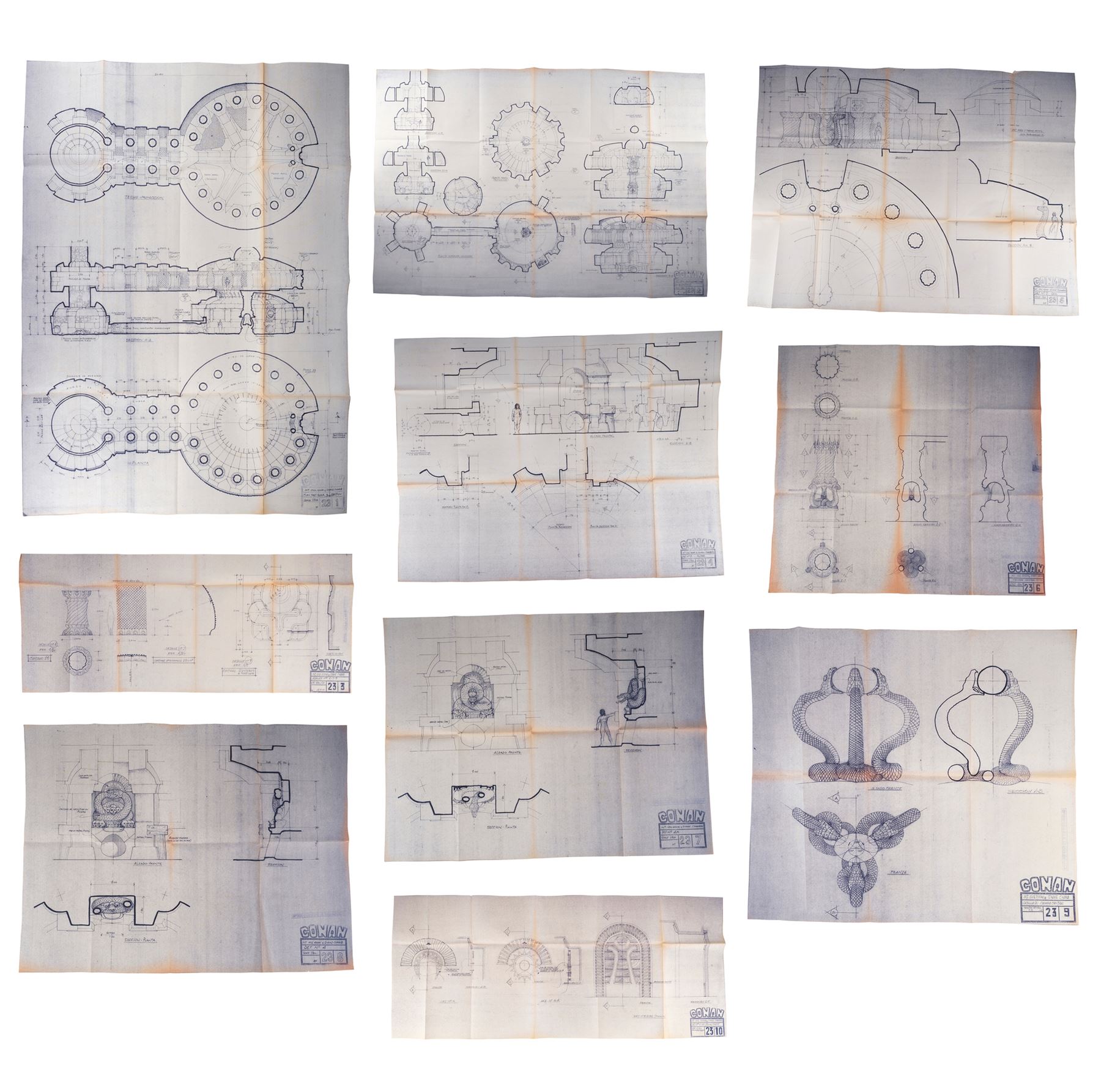 CONAN THE BARBARIAN (1982) - Set of 10 Idol Room and Snake Chamber Blueprints - A set of 10 Idol Room and Snake Chamber blueprints from John Milius' Conan the Barbarian. Conan (Arnold Schwarzenegger) sought out a snake cult to avenge the genocide of his people.