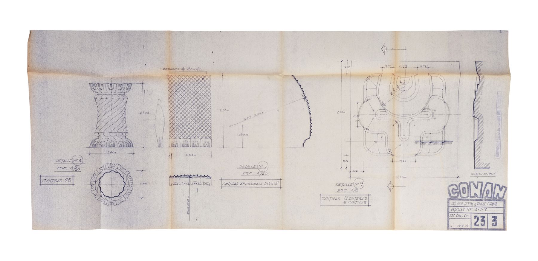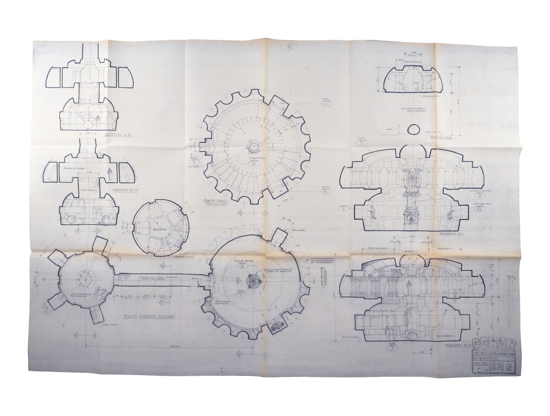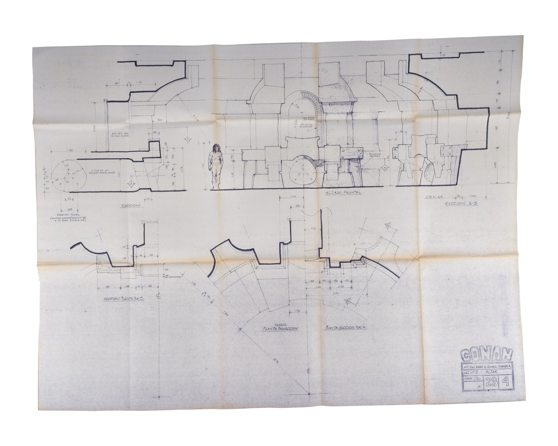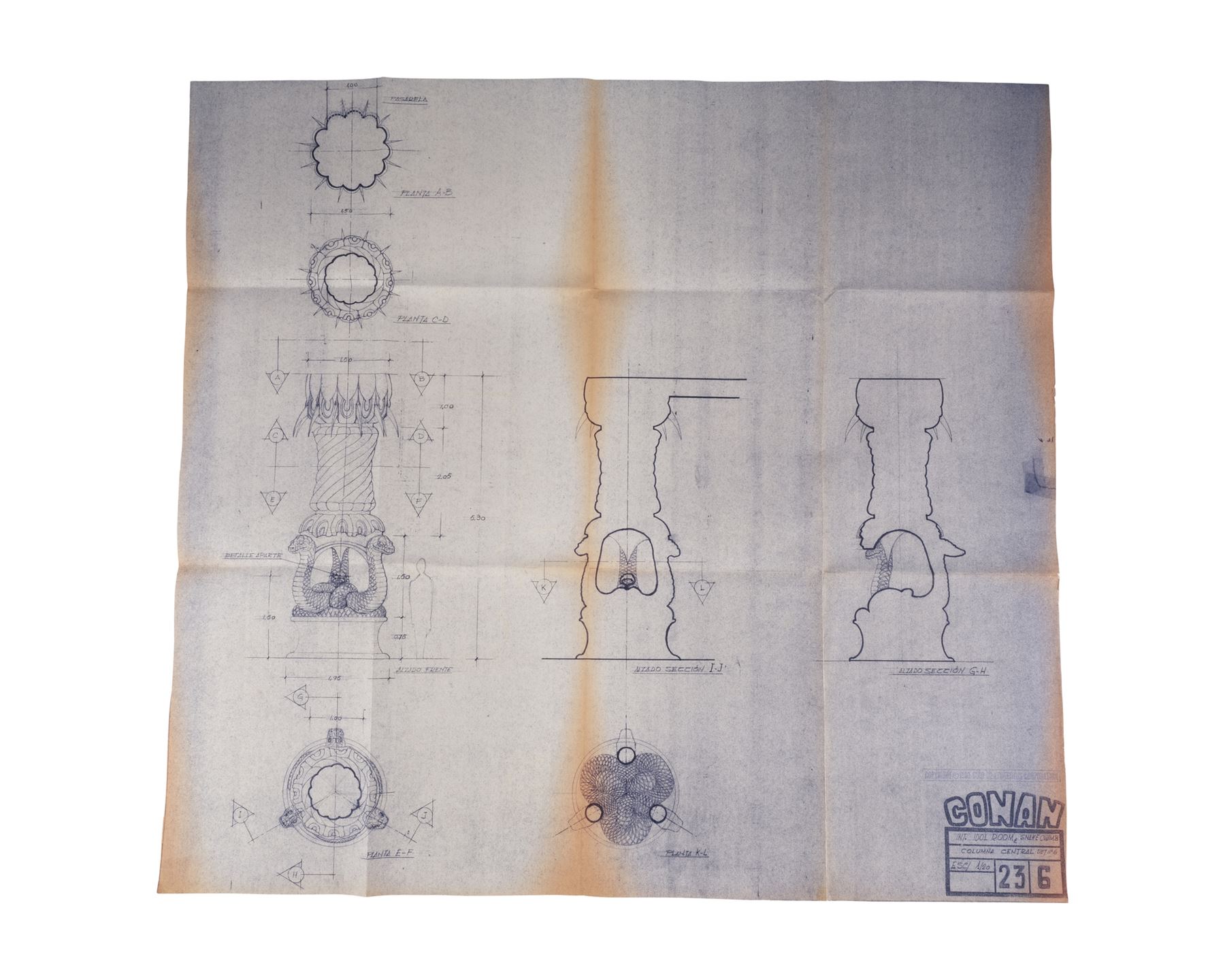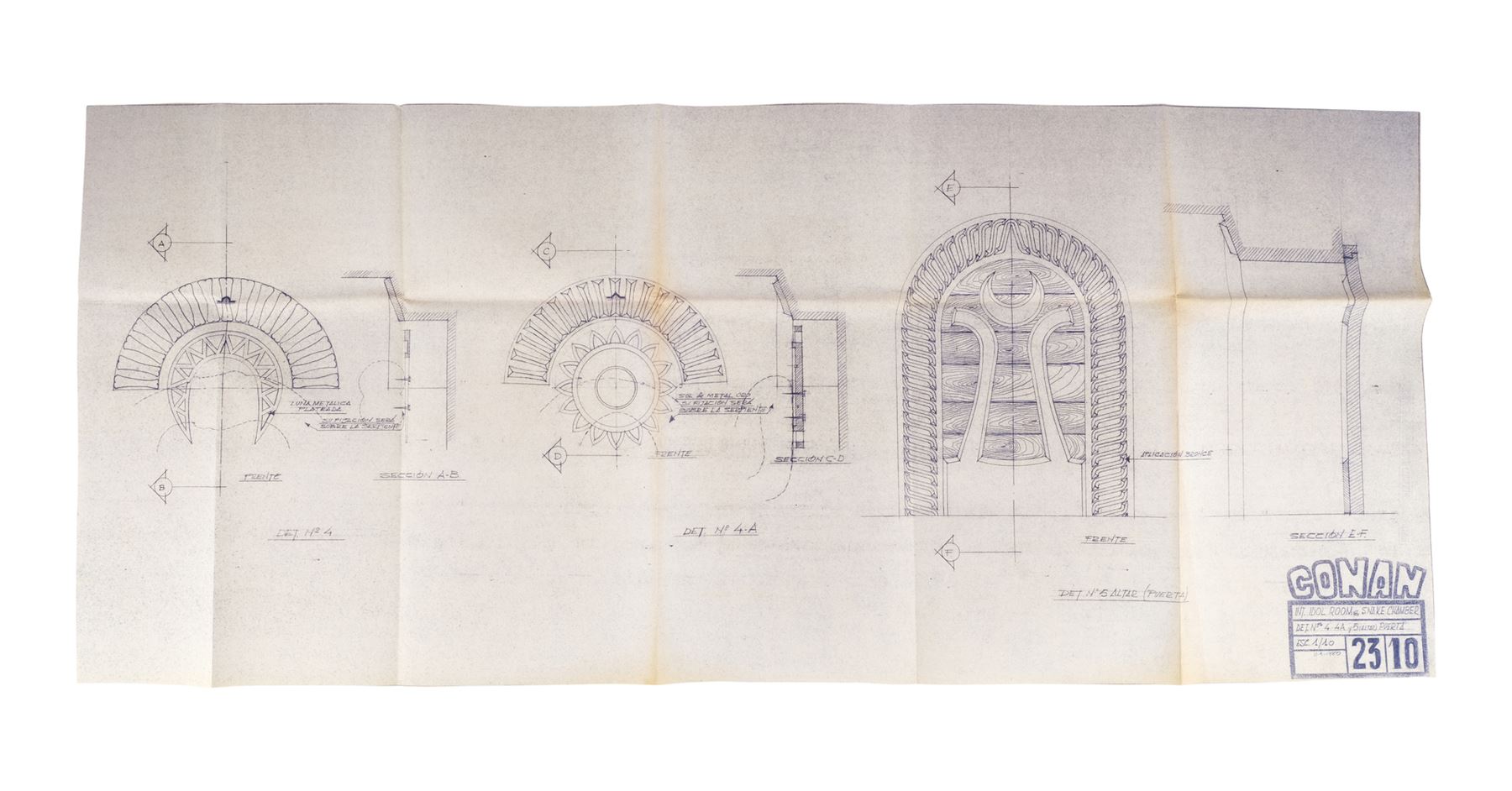 CONAN THE BARBARIAN (1982) - Set of 10 Idol Room and Snake Chamber Blueprints - A set of 10 Idol Room and Snake Chamber blueprints from John Milius' Conan the Barbarian. Conan (Arnold Schwarzenegger) sought out a snake cult to avenge the genocide of his people.