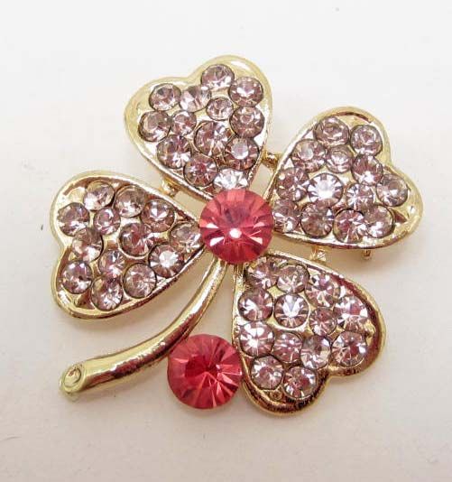 7135 - PINK FOUR LEAF CLOVER RHINESTONE BROOCH