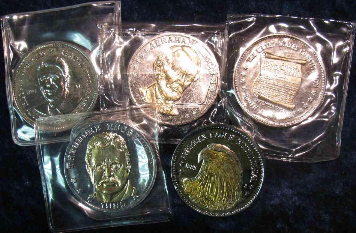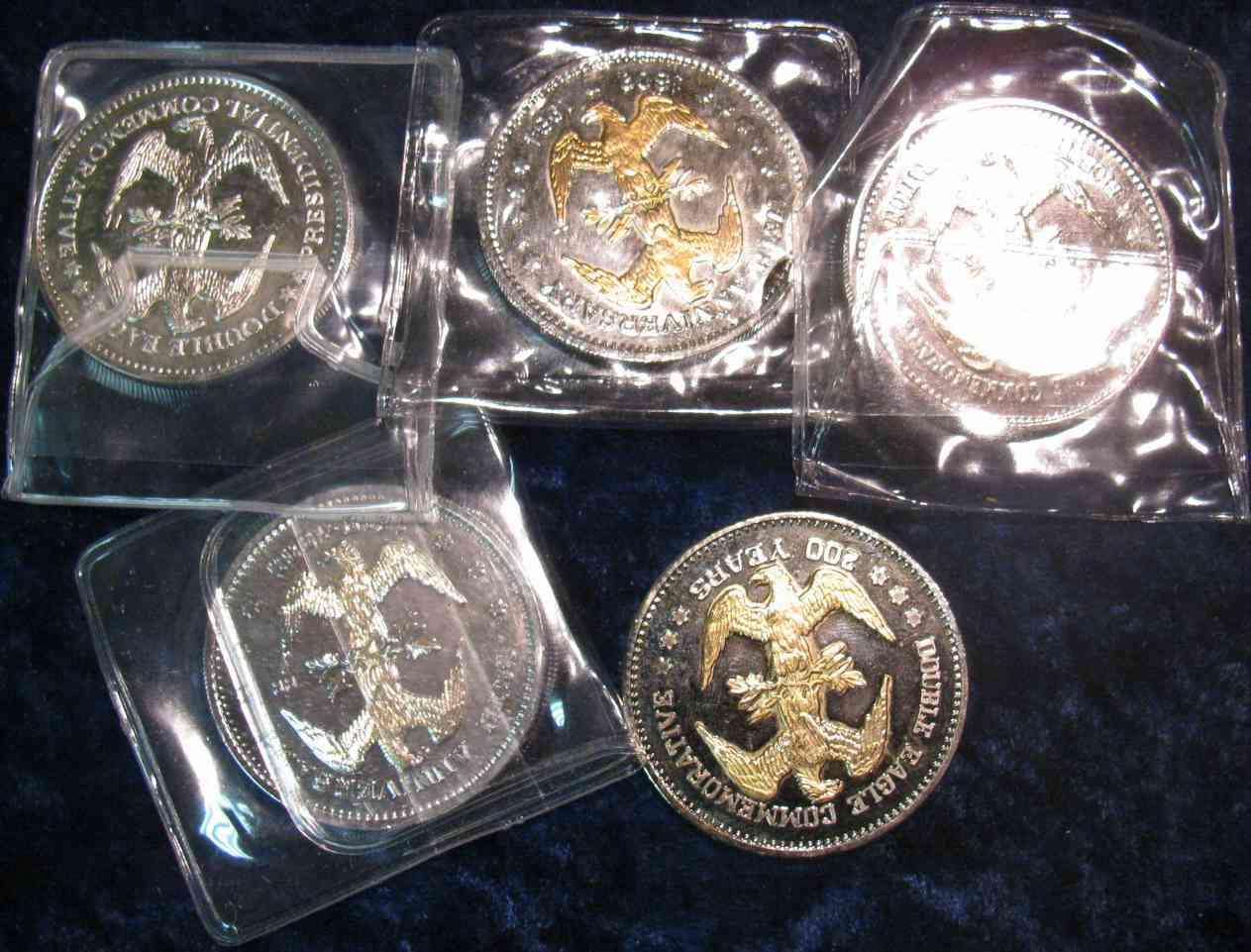 714. (5) Different Double Eagle Commemorative Coins. Some with gold highlighting.