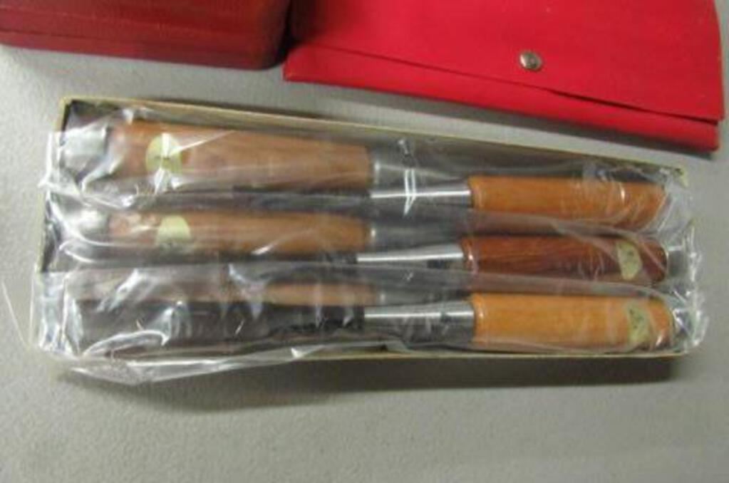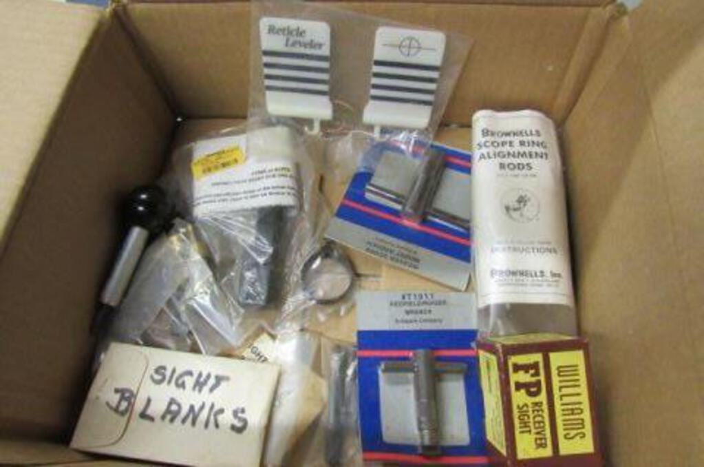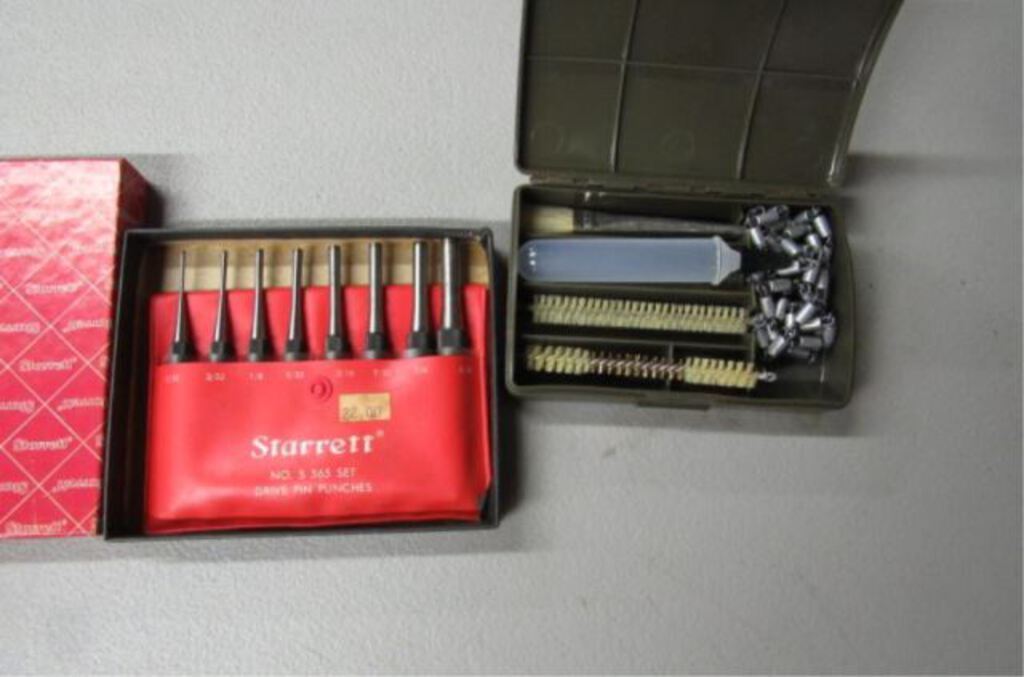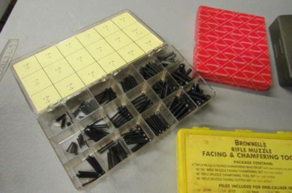 scope ring alignment rods, utility needle file set, gouge set, reticle leveler, rifle muzzle facing and chamfering tools, drive pin punches, etc.