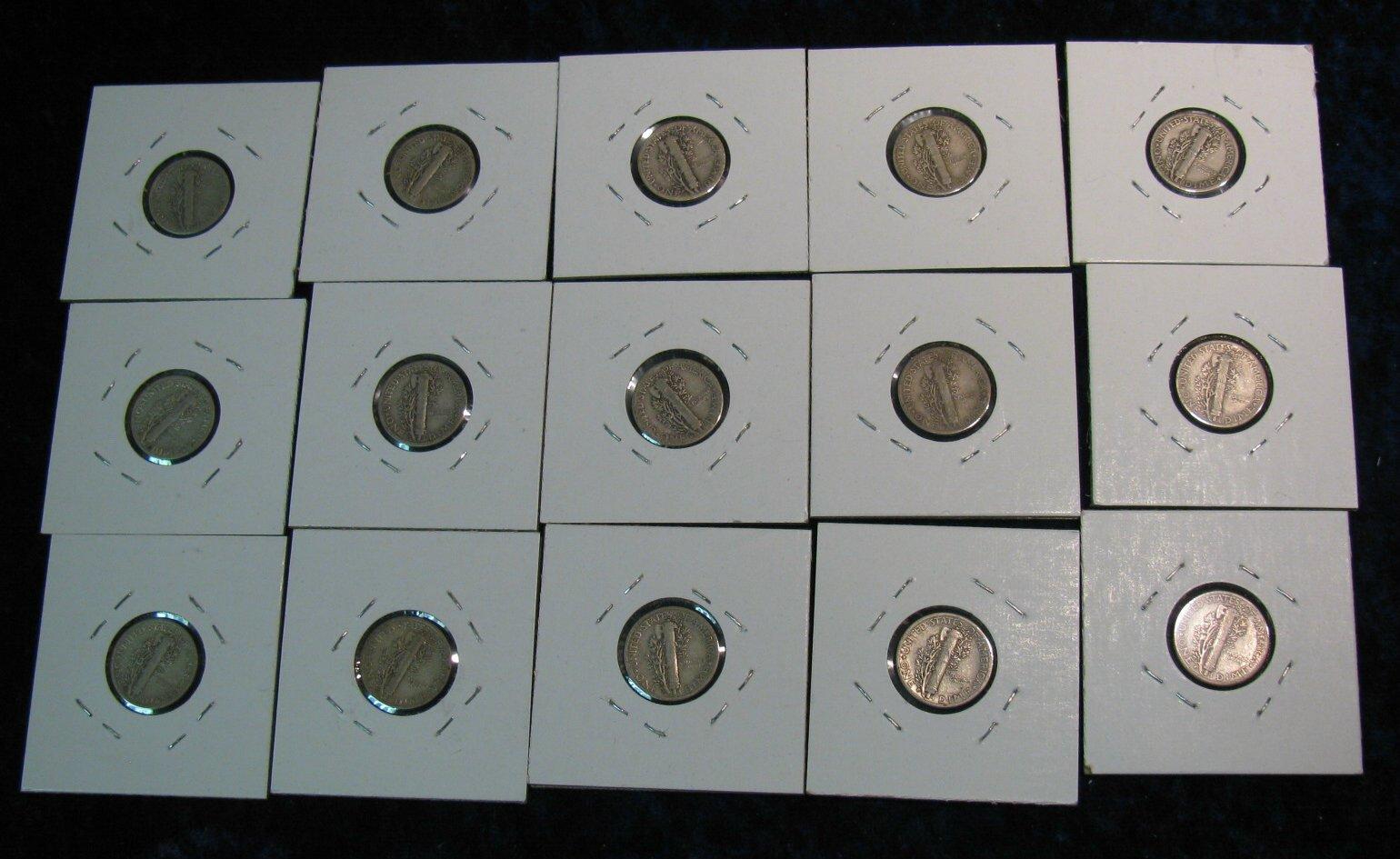 716. (15) Mercury Dimes in cardboard holders.