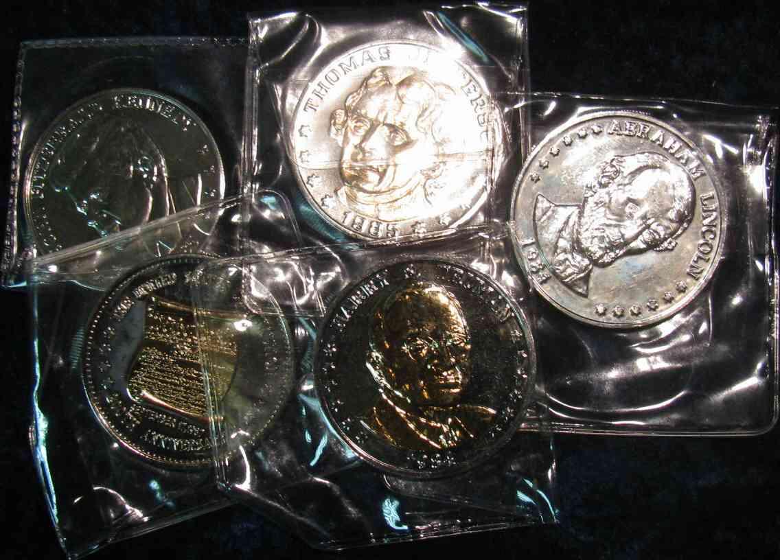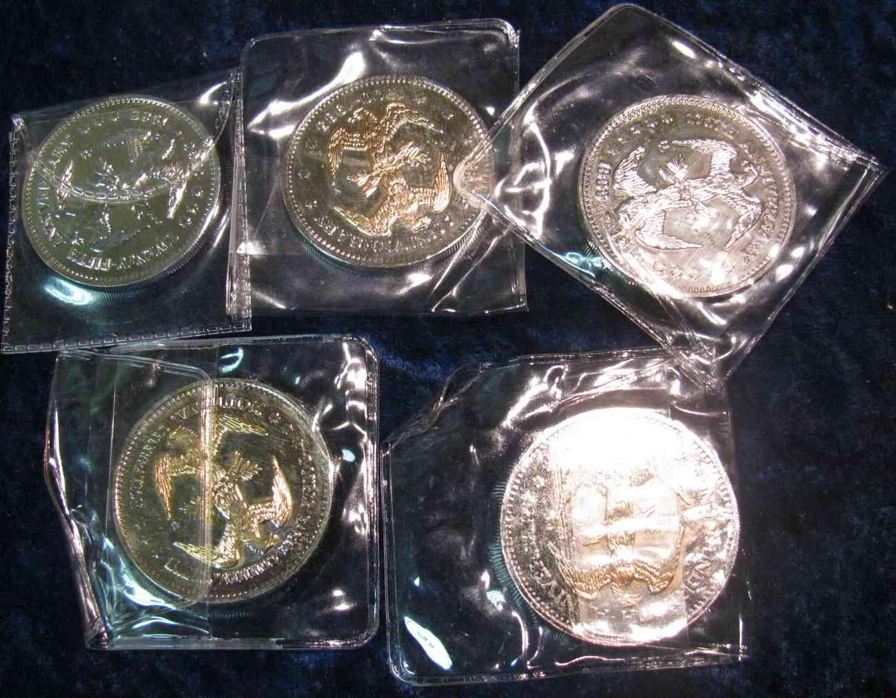 716. (5) Different Double Eagle Commemorative Coins. Some with gold highlighting.