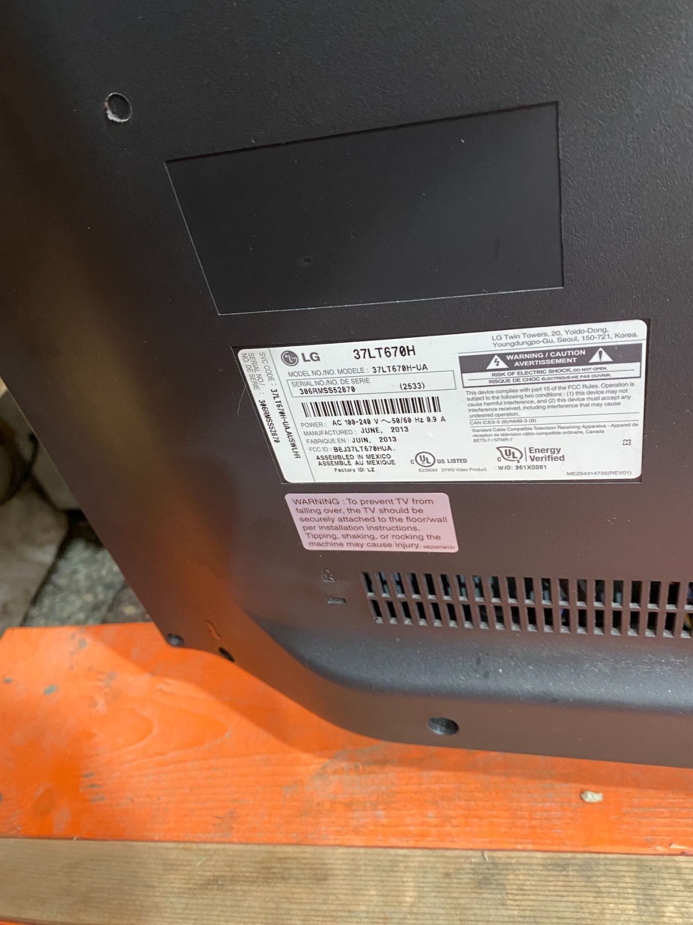 - LG 37" TV