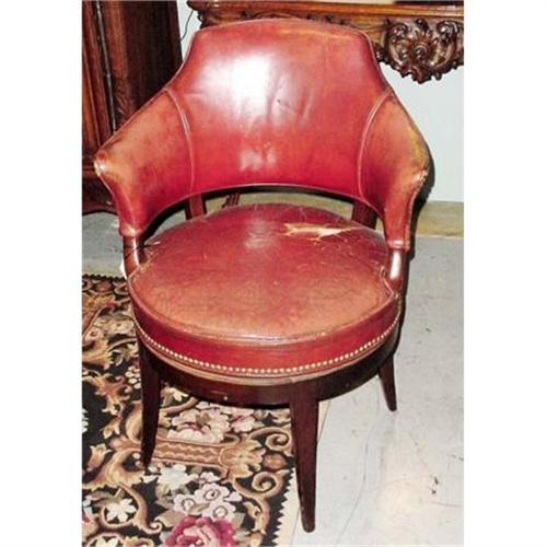 Handsome English Swival Desk Chair In Leather, Torn Spot On Seat