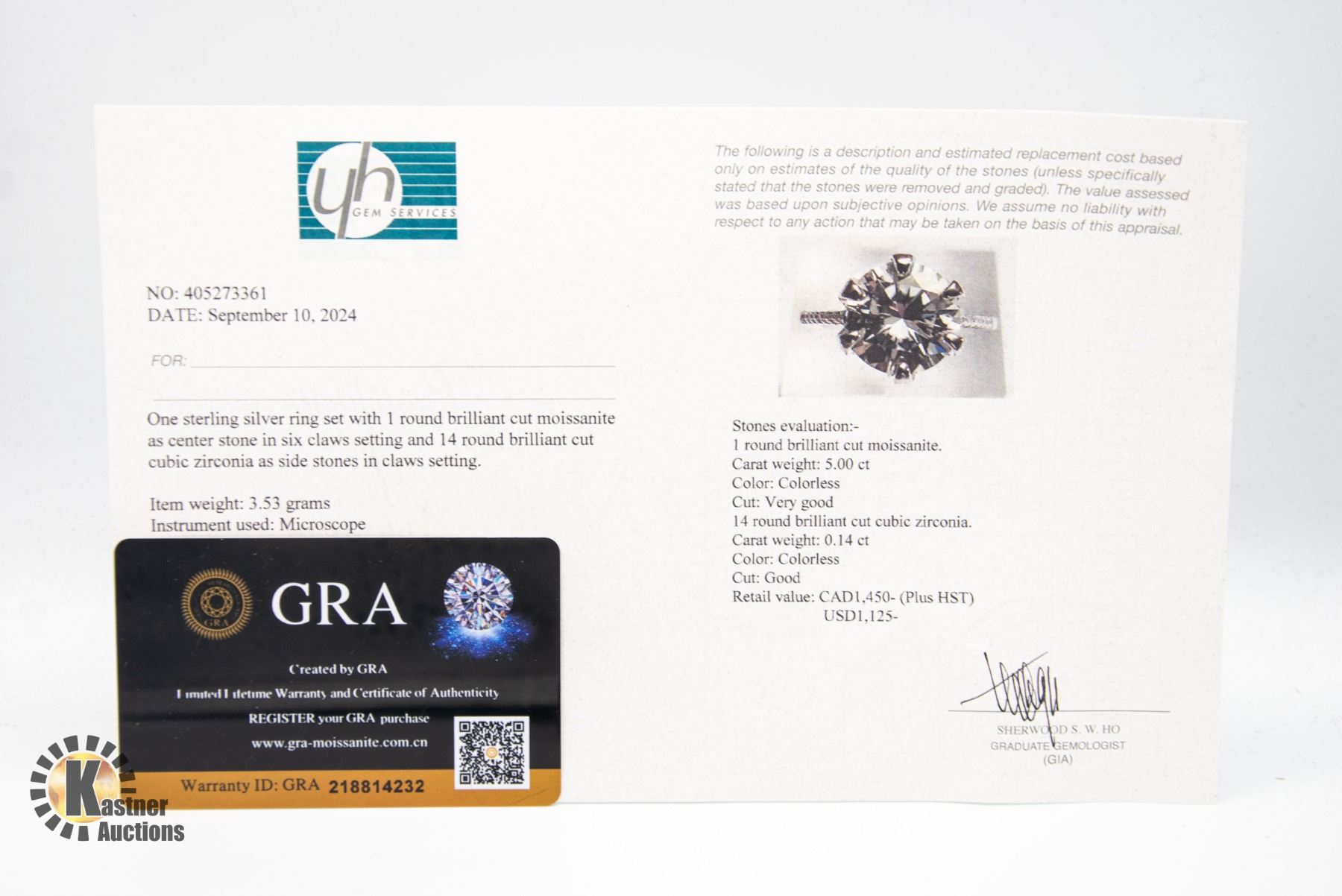MOISSANITE STONE VVS D COLOR SET IN CENTER IN 925 SILVER RING SIZE 9 RETAIL VALUE $1,450.00 **ALL ITEMS MUST BE REMOVED BY 5PM SATURDAY, OCTOBER 12TH 2024. ALL REMAINING ITEMS WILL BE SUBJECT TO A $6.00 PER DAY STORAGE CHARGE. ANY ITEMS REMAINING AFTER MONDAY, OCTOBER 27TH 2024 WILL BE CONSIDERED FORFEITED. NO REFUNDS WILL BE ISSUED FOR FORFEITED ITEMS. TO SCHEDULE A PICK UP APPOINTMENT CLICK HERE