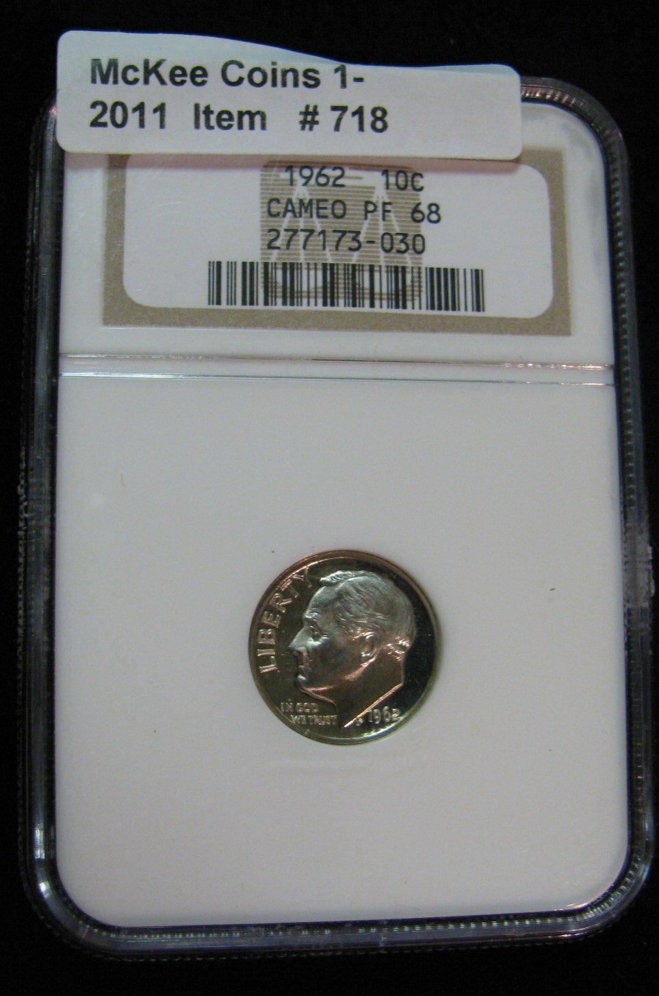 718. 1962 P Roosevelt Dime. NGC slabbed Cameo PF 68 .