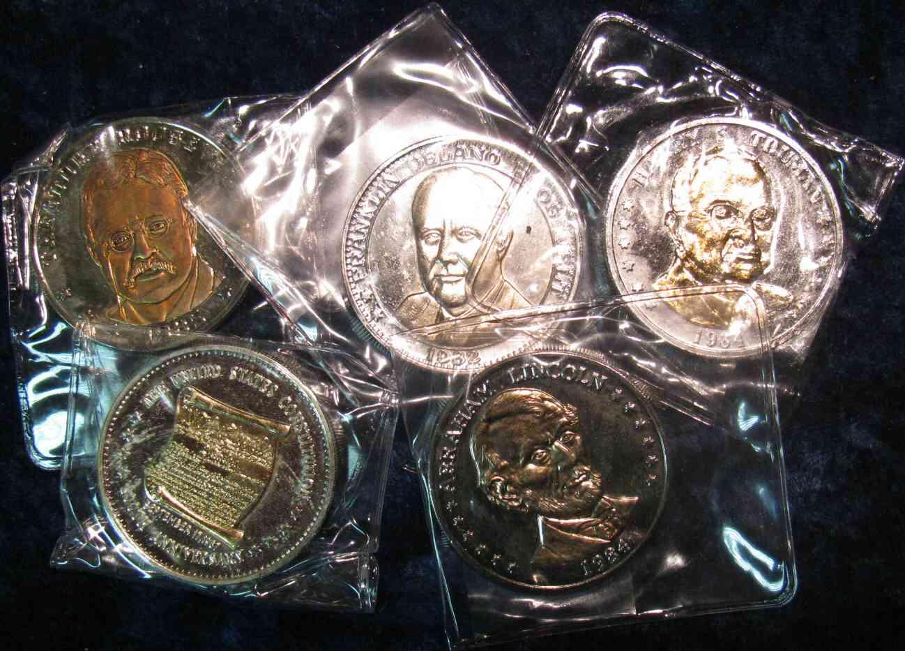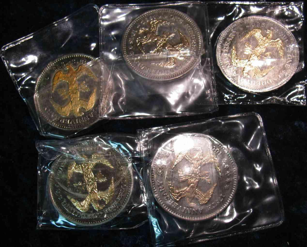 718. (5) Different Double Eagle Commemorative Coins. Some with gold highlighting.