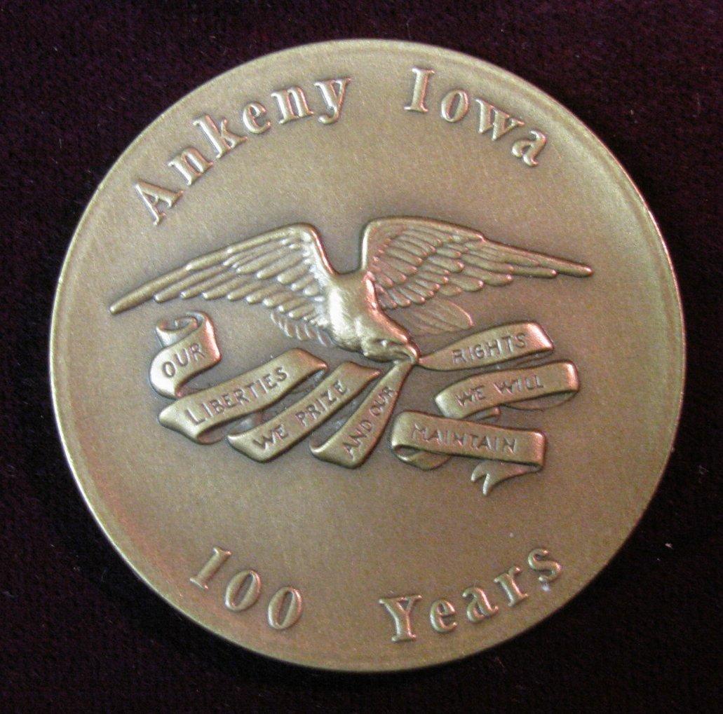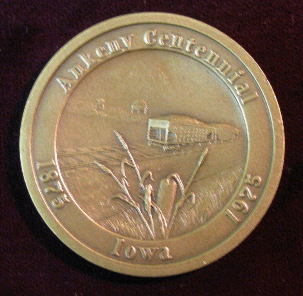 72. 1875-1975 Ankeny Iowa Centennial Bronze Medal. Minted in high relief by Medallic Art Co.
