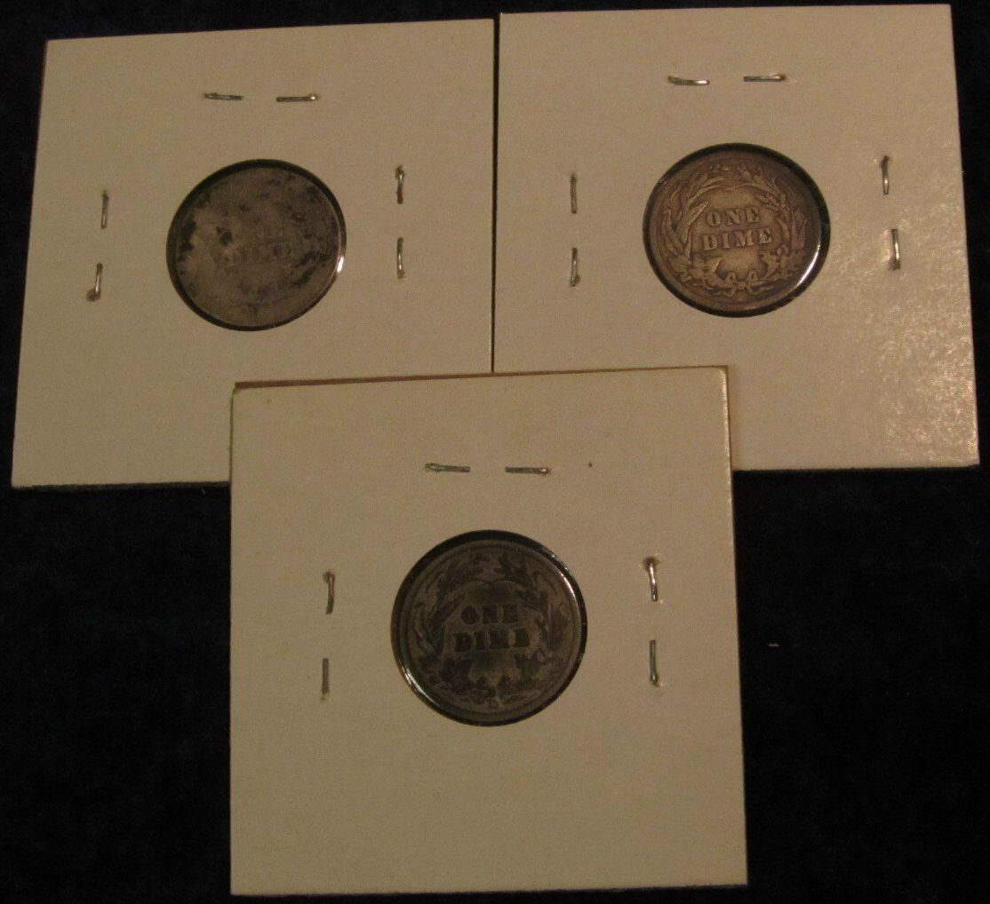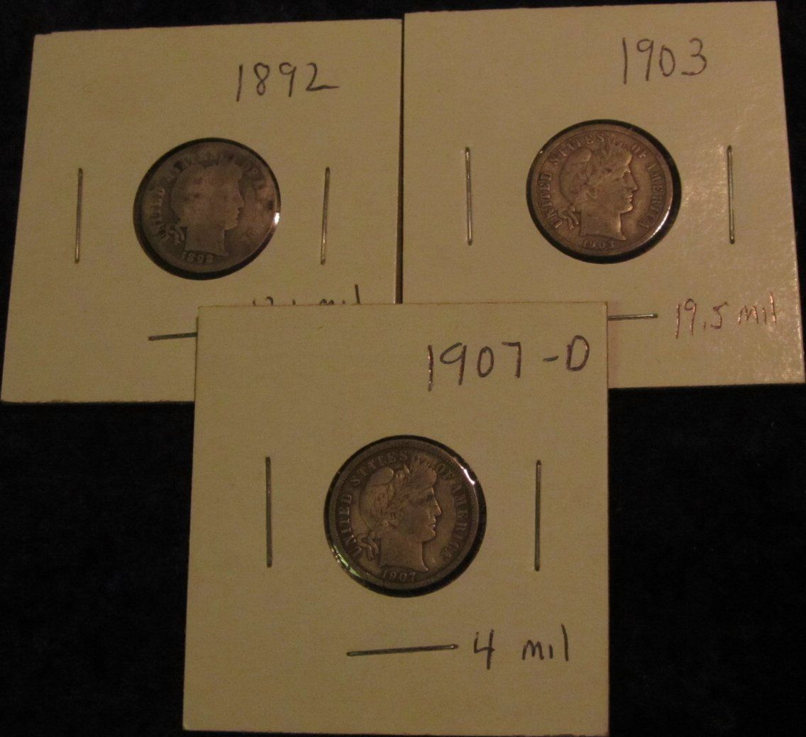72. 1892 P, 03 P, & 07 D Barber Dimes. AG-VG.