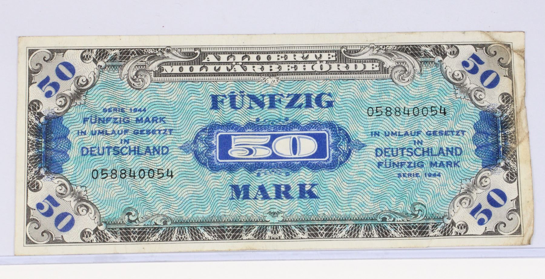 WW2 WORLD WAR TWO ALLIED MILITARY OCCUPATION OF GERMANY 50 MARK FÜNFZIG MARK PAPER MONEY BILL NOTE DEUTSCHLAND SERIES 1944 ALLIIERTE MILITÄRBEHÖRDE
