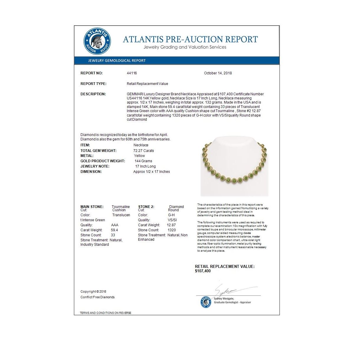 72.27 ctw Tourmaline & Diamond Necklace 14K Yellow Gold