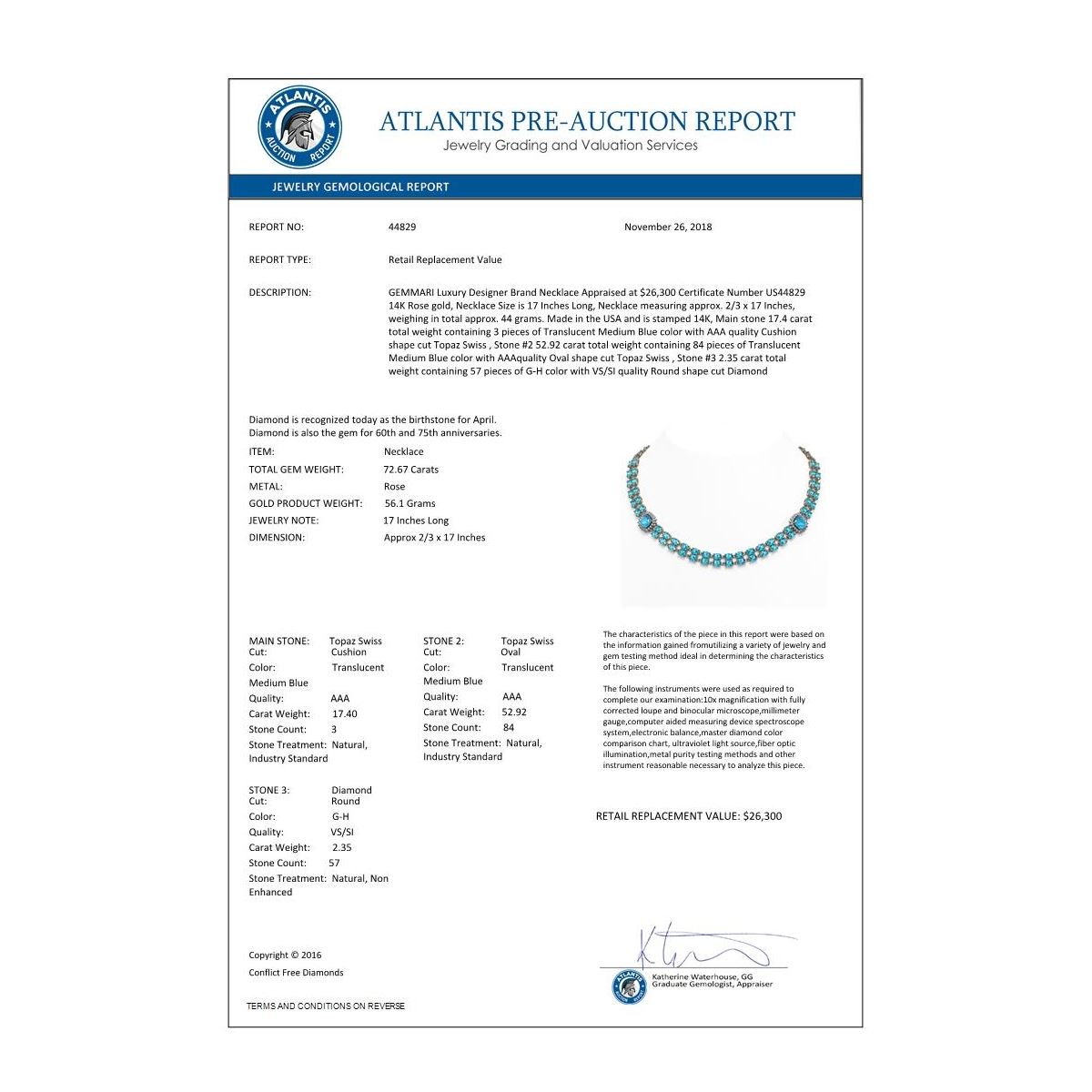 72.67 ctw Swiss Topaz & Diamond Necklace 14K Rose Gold