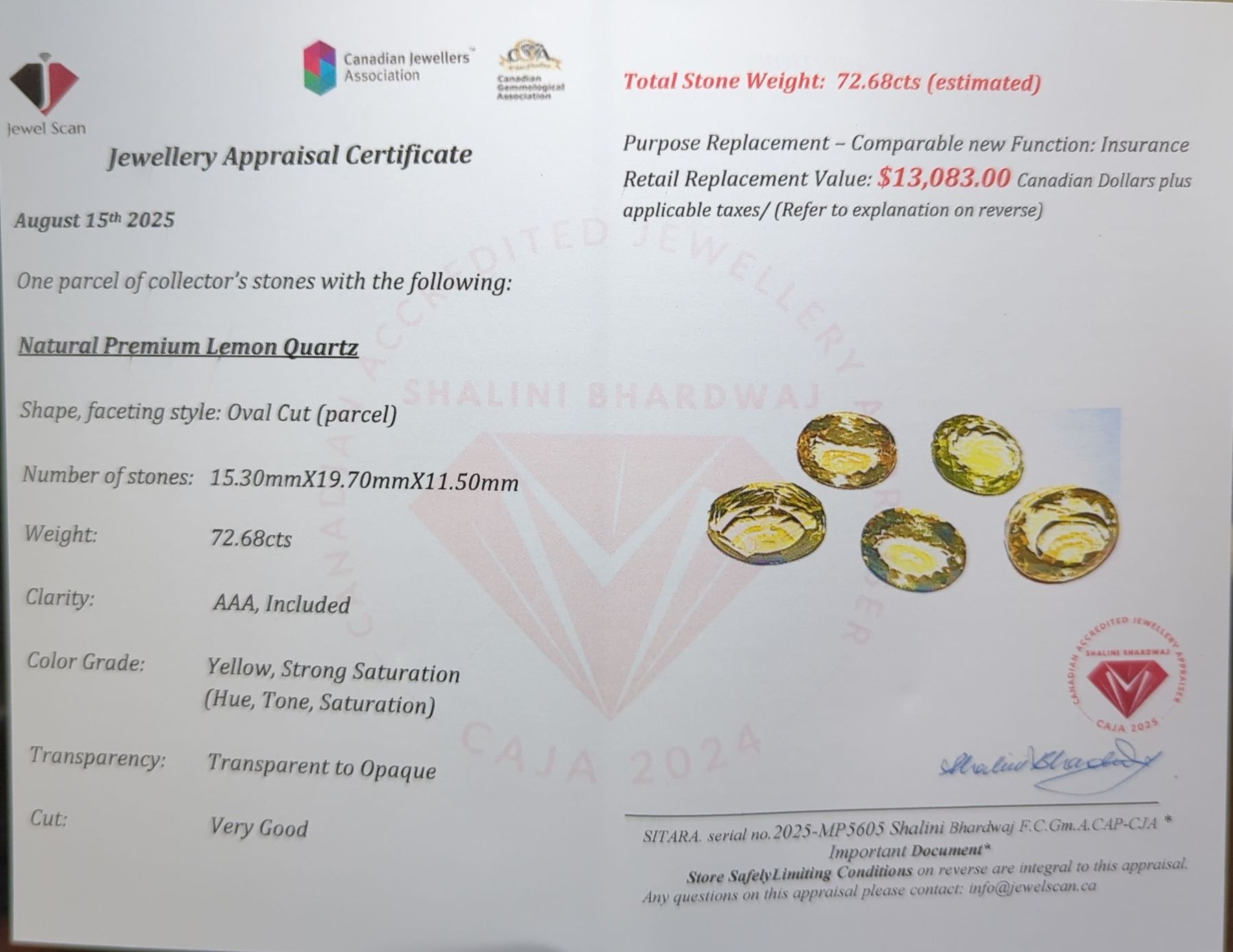72.68 ct Certified Lemon Quartz gemstone Parcel ($13,083 Appraisal)